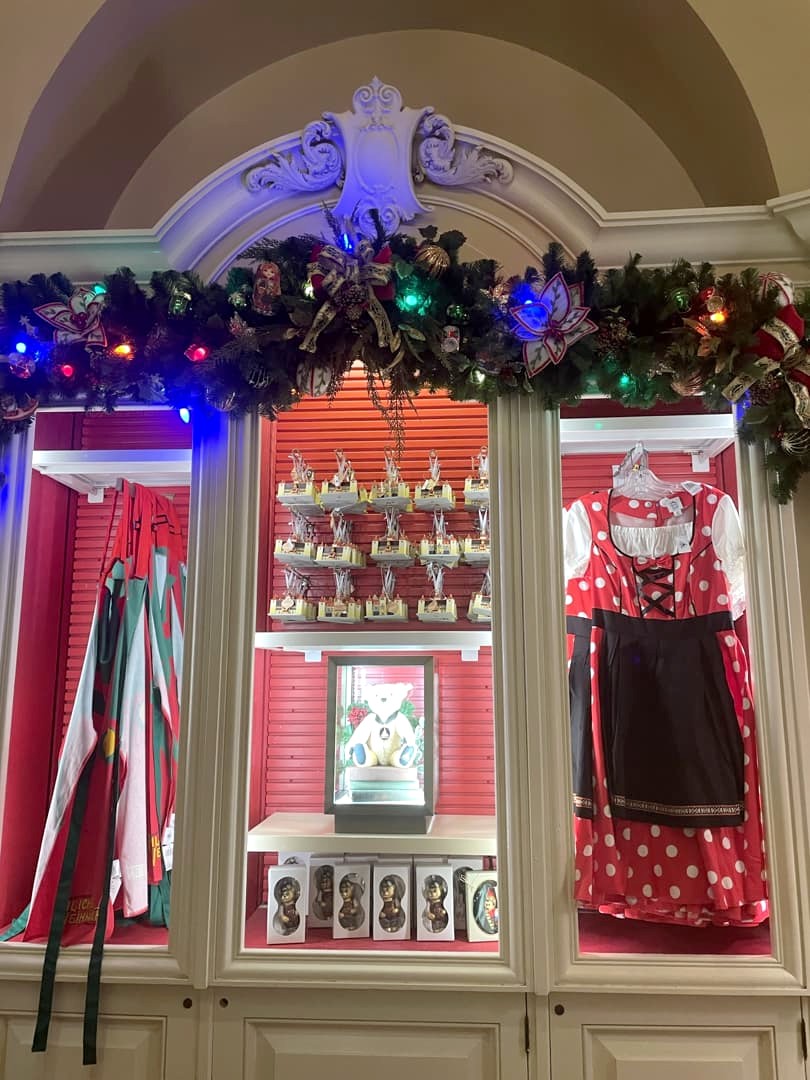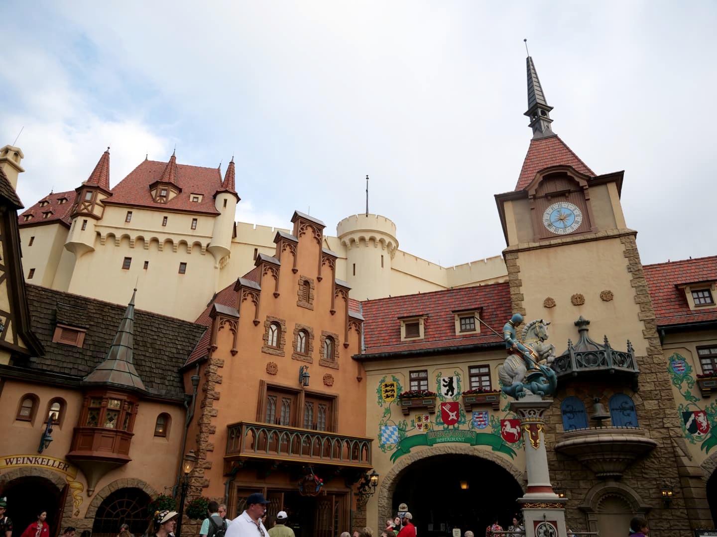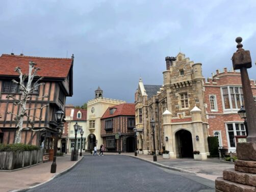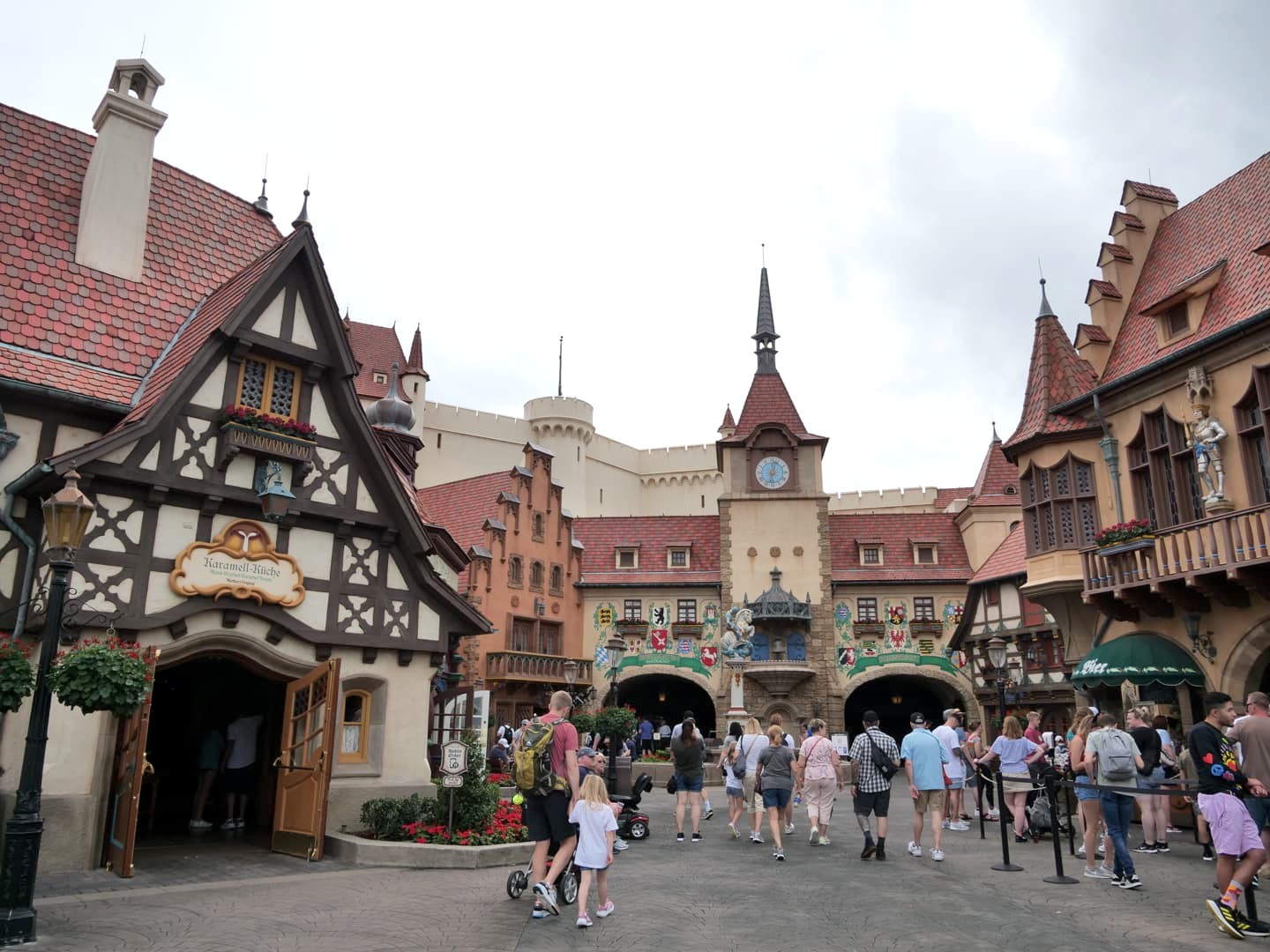 On passe d’une ville italienne à une ville typiquement allemande dans le pavillon de l’Allemagne, lui aussi inspiré par différentes région du pays. On y trouve notamment un Biergarten où on peut manger allemand et boire des bières (oui !). C’est dans ce pavillon que se baladent Blanche-Neige et les Sept Nains.