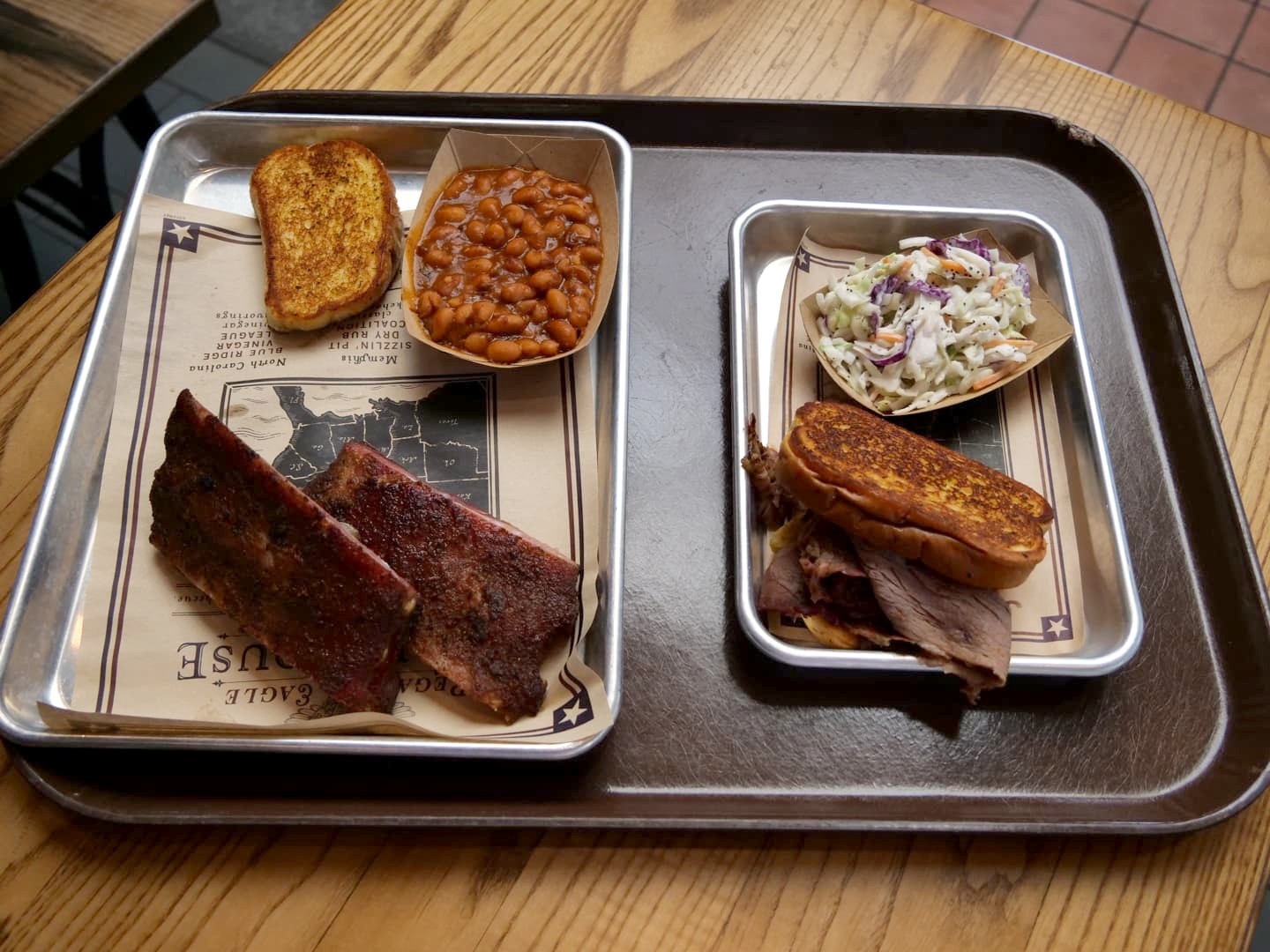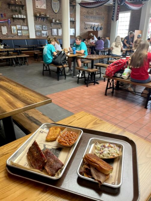 Le midi, on a mangé dans ce pavillon à la Regal Eagle Smokehouse (Craft Drafts & Barbecue). On s’est à nouveau régalé avec un barbecue à très bon prix (et sans trop d’attente). On aurait très bien pu manger ça dans une smokehouse en dehors du parc pour le même prix, c’est dire !