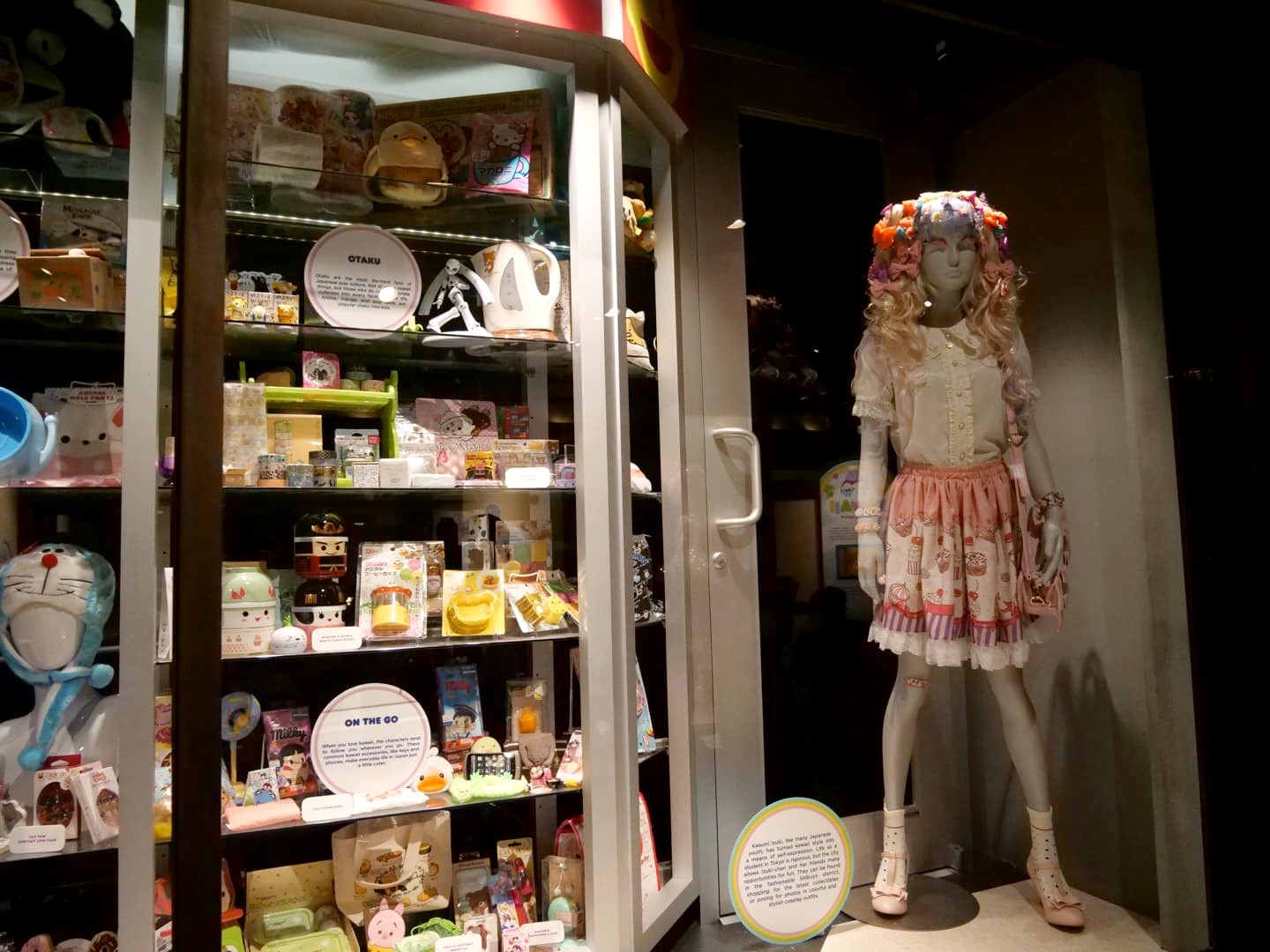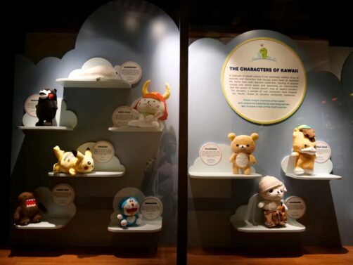 Une réplique de la forteresse d’Himeji mène ensuite à une galerie abritant des expositions liées à la culture japonaise. L’exposition du moment, que nous avons pu voir, « Kawaii Life », est dédiée à la culture du « kawaii », soit à l’amour des japonais pour toutes les choses « mignonnes ». Ca m’a rendue nostalgique du Japon, surtout en voyant le bel assortiment de produits japonais du (grand) magasin du pavillon !