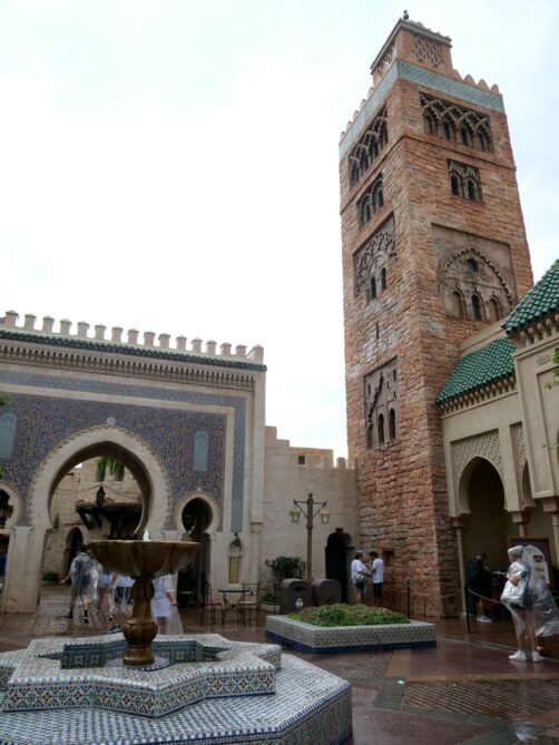 Après la France, on débarque au Maroc, une petite zone avec pas grand chose à faire à part une galerie sur l’art et l’histoire du Maroc, un restaurant marocain, et un spectacle de danse à certains moments. Il faut cependant noter que le Maroc a été très investi dans l’élaboration de sa zone, et le roi Hassan II a même envoyé des artisans marocains pour faire les mosaïques ! C’est le seul pavillon qui est sponsorisé directement par le pays lui-même, alors que les autres pavillons sont sponsorisés par des corporations.