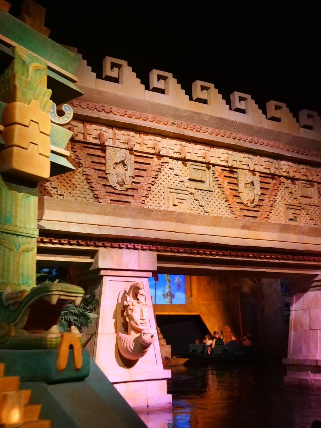 Dernier pavillon et pas des moindres : celui du Mexique, installé dans la réplique d’une ancienne pyramide mésoaméricaine. C’est vraiment surprenant quand on pénètre à l’intérieur de celle-ci car il y fait « nuit », quelle que soit l’heure de la journée. On y retrouve une petite exposition sur la culture et l’art mexicains, une place avec des magasins, mais aussi un restaurant très romantique (San Angel Inn, impossible à réserver malheureusement car le cadre est vraiment incroyable…) et un petit tour en bateau façon « Le Monde est Petit », avec des poupées et des décors mexicains, Gran Fiesta Tour Starring The Three Caballeros (avec Donald Duck).
