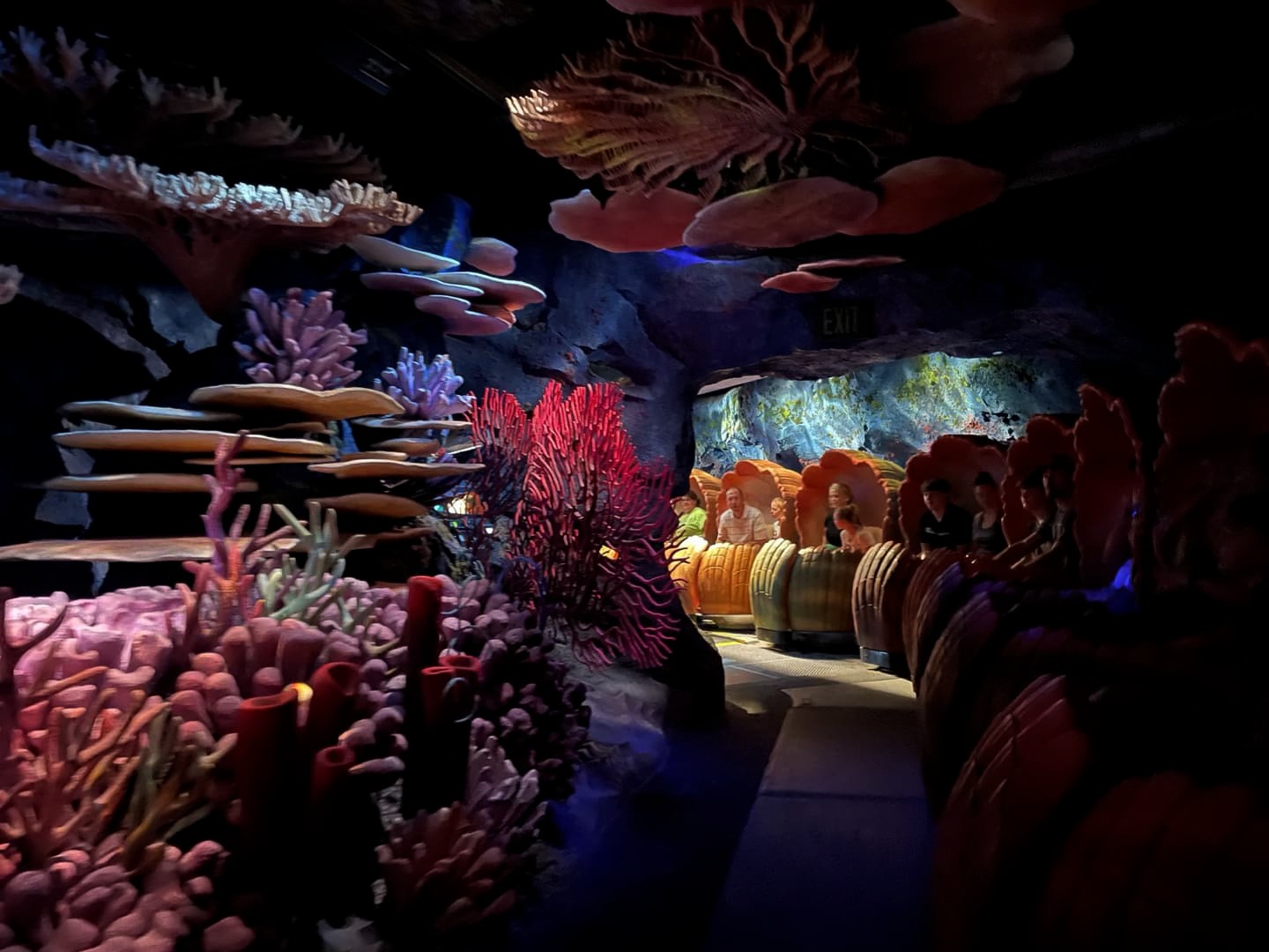 Spaceship Earth, la sphère et pavillon emblématique du parc EPCOT abrite un dark ride qui retrace l’histoire des innovations humaines depuis la préhistoire. Un peu vieillot et l’attraction est tombée en panne pendant que nous étions dedans, mais l’expérience reste plutôt sympa, avec un côté interactif.