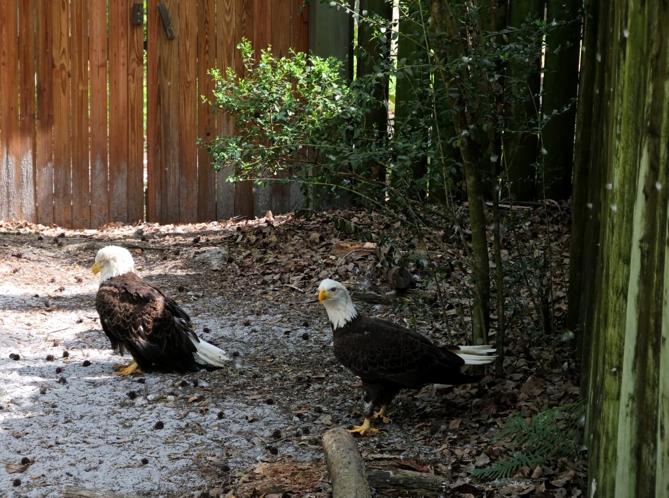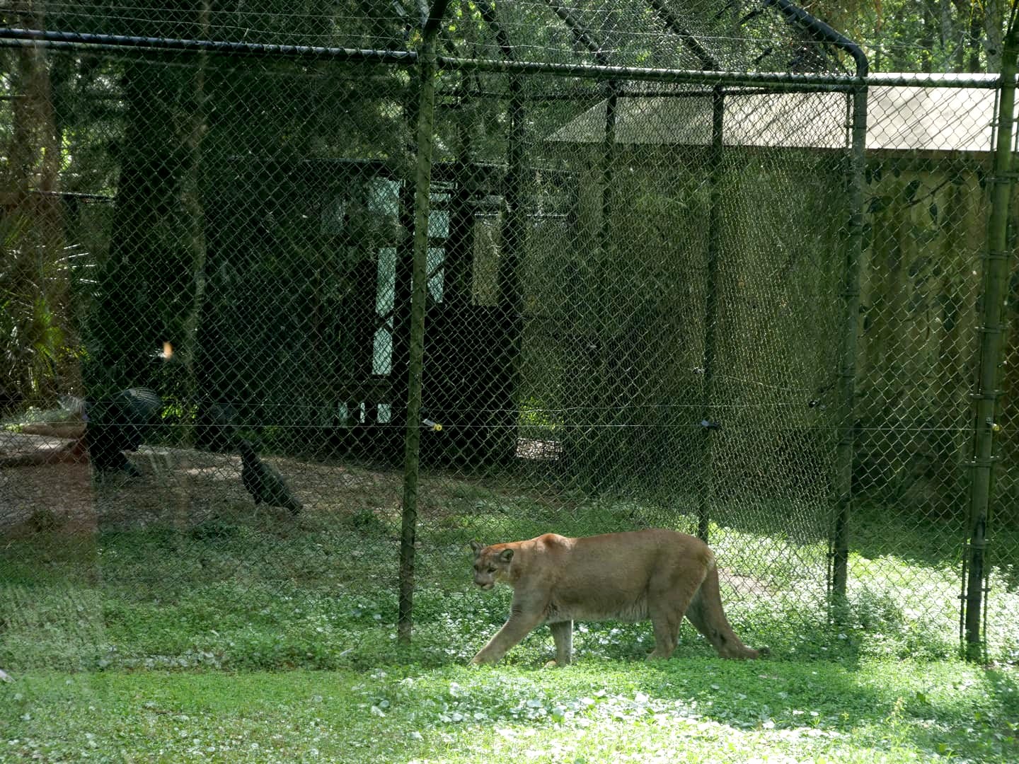 Des panneaux expliquent également ce qui est arrivé aux pensionnaires du moment. Pour les oiseaux, c’est souvent des accidents de la route qui brisent leurs ailes et les empêche de voler à nouveau. On a eu le coeur brisé en voyant deux aigles qui ne pouvaient plus voler, mais qui semblaient ne s’être toujours pas fait à l’idée… Un peu plus loin, on croise également une des deux panthères de Floride du parc, ainsi qu’un ours noir sauvé par le parc, mais devenu trop habitué aux humains durant les premiers mois de sa vie que pour pouvoir être relâché.