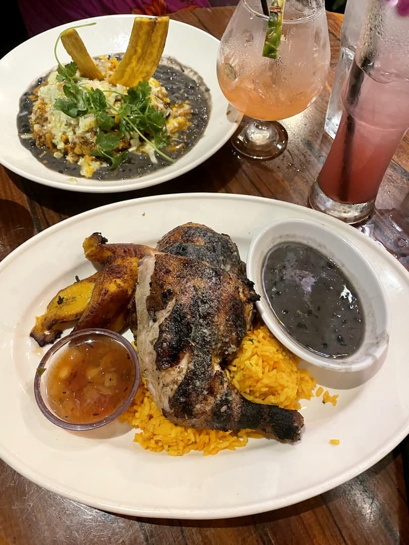 Et nous voici enfin de retour à Orlando, alors que la nuit est en train de tomber. La faim se faisant sentir et les prix des Uber ayant explosés en pleine heure de pointe, nous nous laissons tenter par un des restos du grand parking où on nous a déposé : le Bahama Breeze Island Grille (celui-ci précisément), un restaurant de cuisine des Caraïbes (qui fait partie d’une chaîne). Et bien, cette décision de dernière minute nous a permis de clôturer de manière très gourmande cette belle journée, car nous nous sommes régalées ! Dans un cadre très agréable qui fait lui aussi voyager, le restaurant propose le meilleur de différents pays des Caraïbes. Mélissa et moi, on ne se fait pas prier pour goûter à tout ça (même s’il ne faut pas trop regarder aux calories indiquées sur la carte !). Mention spéciale pour le jerk chicken, comme en Jamaïque, qui était excellent.