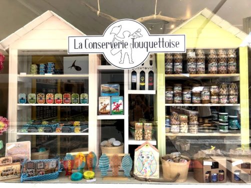 Une boutique avec une belle sélection de conserves et de produits locaux, à deux pas du marché.
