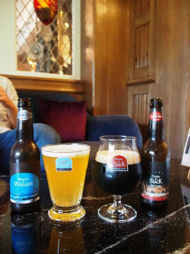 Nous avons pris l’apéro au bar (deux bières de la région !) avant de passer côté restaurant. Les prix à la carte ne sont pas donnés, mais vous pouvez également choisir le menu « La Table du Manoir » à 38€.