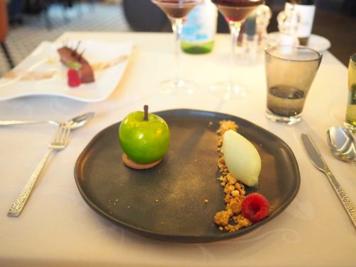 Nous y avons passé un très agréable et délicieux moment. J’ai particulièrement apprécié le ris de veau, fèves en condiment et jus de morilles, et, en dessert, la magnifique Pomme Granny Smith revisitée.