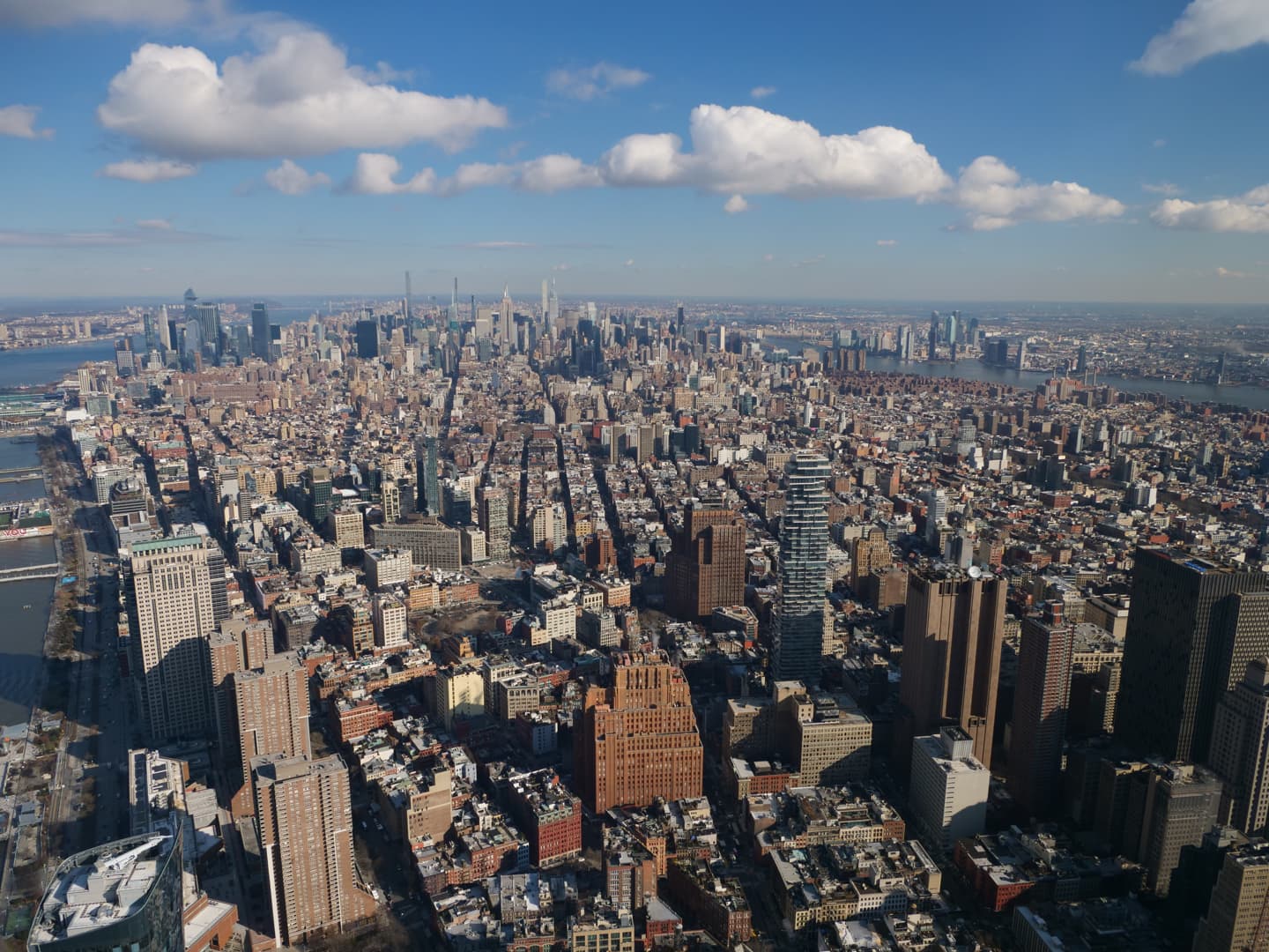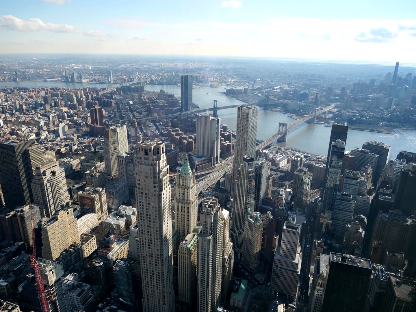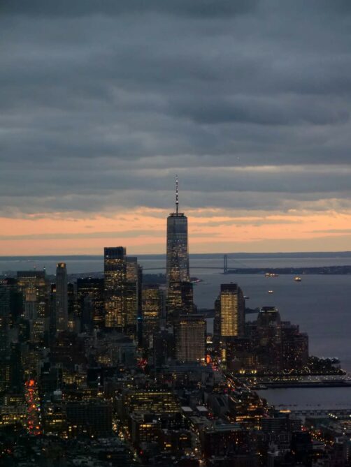 Le One World Trade Center ou « Freedom Tower » est le nouveau plus haut gratte-ciel de New York, situé juste à côté du Mémorial du 11 Septembre. Son observatoire situé au 102ème étage offre donc des vues panoramiques sur tout Manhattan et au-delà. Par contre, par rapport aux autres plateformes d’observation, c’est celle que j’ai le moins appréciée. Il n’y a aucun espace extérieur et il y a énormément de reflets dans les vitres. J’ai aussi trouvé que la vue était moins impressionnante (mais ça a l’avantage d’offrir un point de vue différent de Manhattan vu du sud).