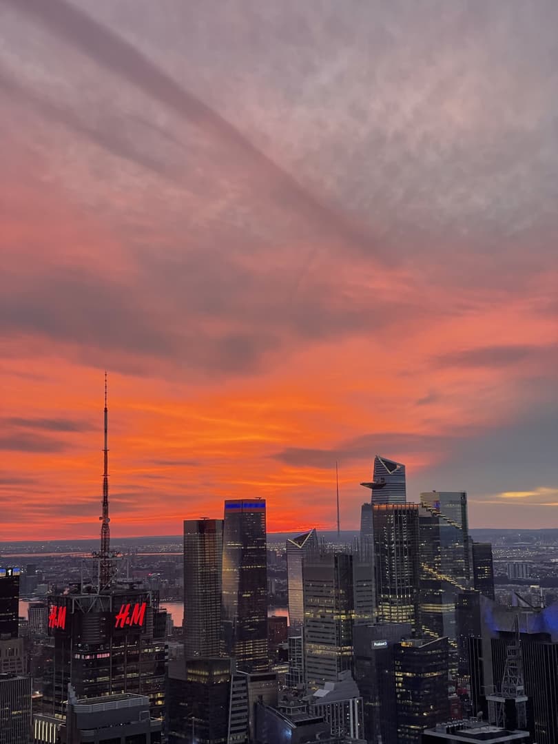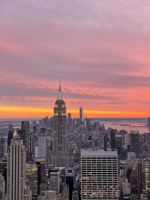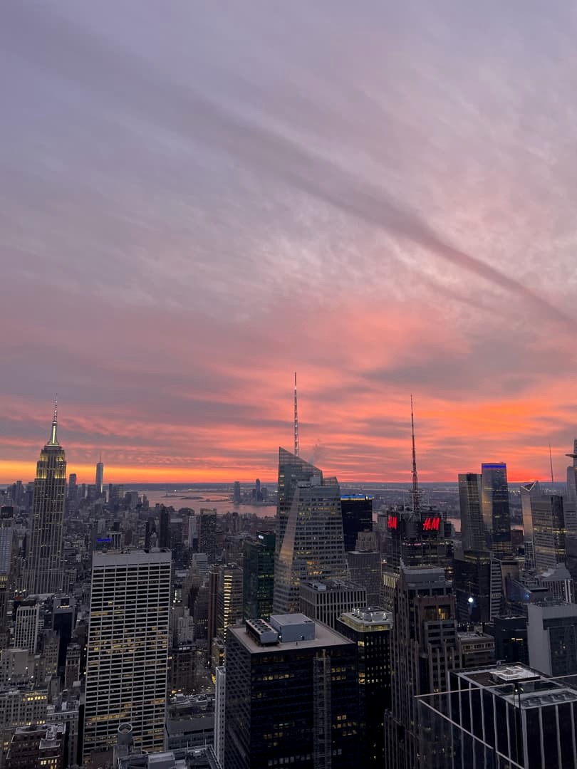 Même si c’est aujourd’hui le plus dur à réserver (surtout pour l’heure du coucher du soleil, la meilleure), le Top of the Rock (au sommet du Rockefeller Center) reste quand même pour moi le meilleur point de vue sur New York. C’était la 4ème ou 5ème fois que j’y montais et je crois qu’on ne s’en lasse vraiment jamais (surtout qu’il y a toujours de nouveaux bâtiments qui poussent à Manhattan !). Cerise sur le gâteau, j’ai eu droit au plus beau coucher de soleil du voyage, le ciel est devenu de plus en plus rose, puis rouge vif, c’était magique.