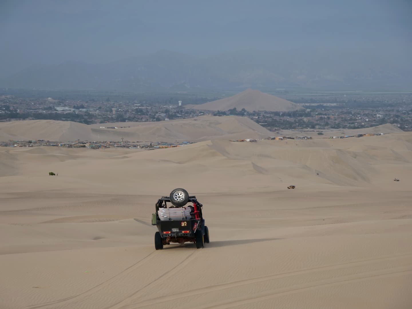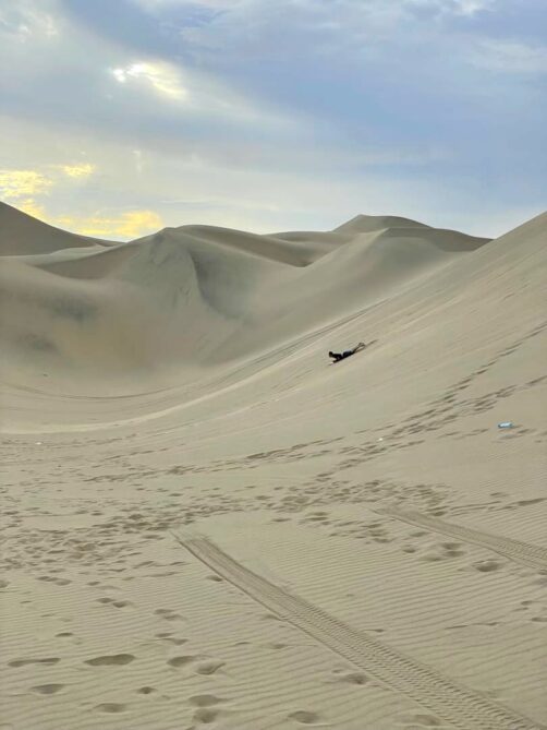 Le grand intérêt du tour classique qui combine buggy et sandboarding (car on peut aussi louer des planches à Huacachina, mais c’est vachement moins cool), c’est que le buggy vient vous rechercher en bas des dunes. Et croyez-moi, c’est vraiment difficile avec la chaleur de tout remonter à pied (on l’a vite compris en essayant de prendre un peu de hauteur pour faire quelques photos de Huacachina le lendemain matin).