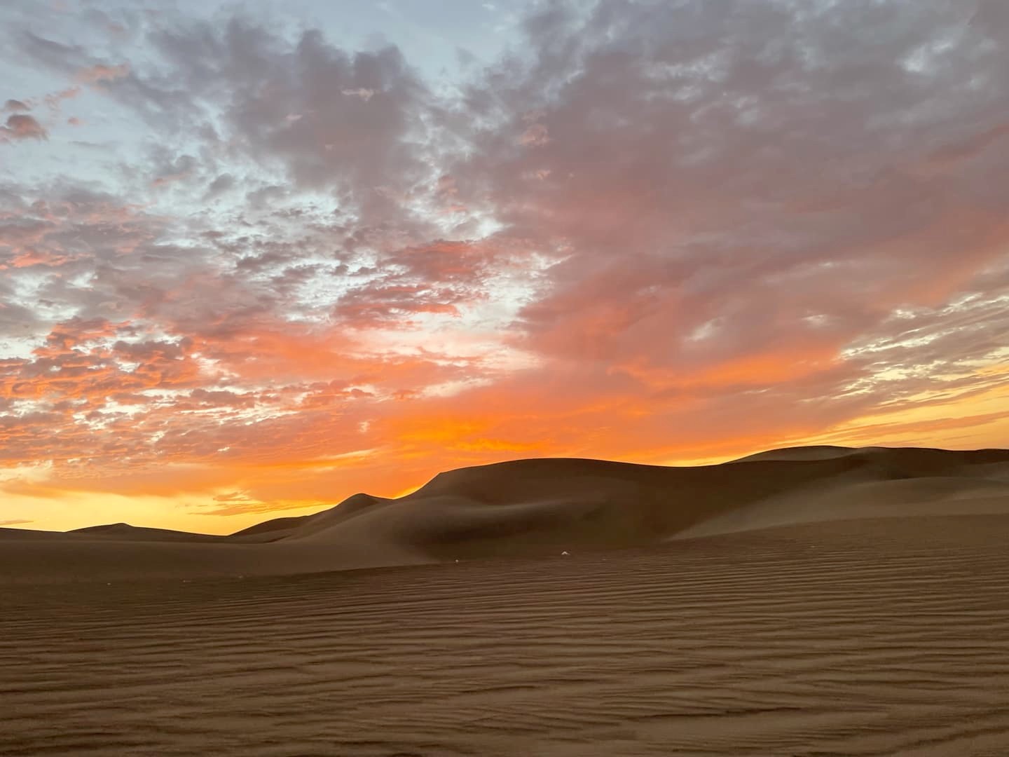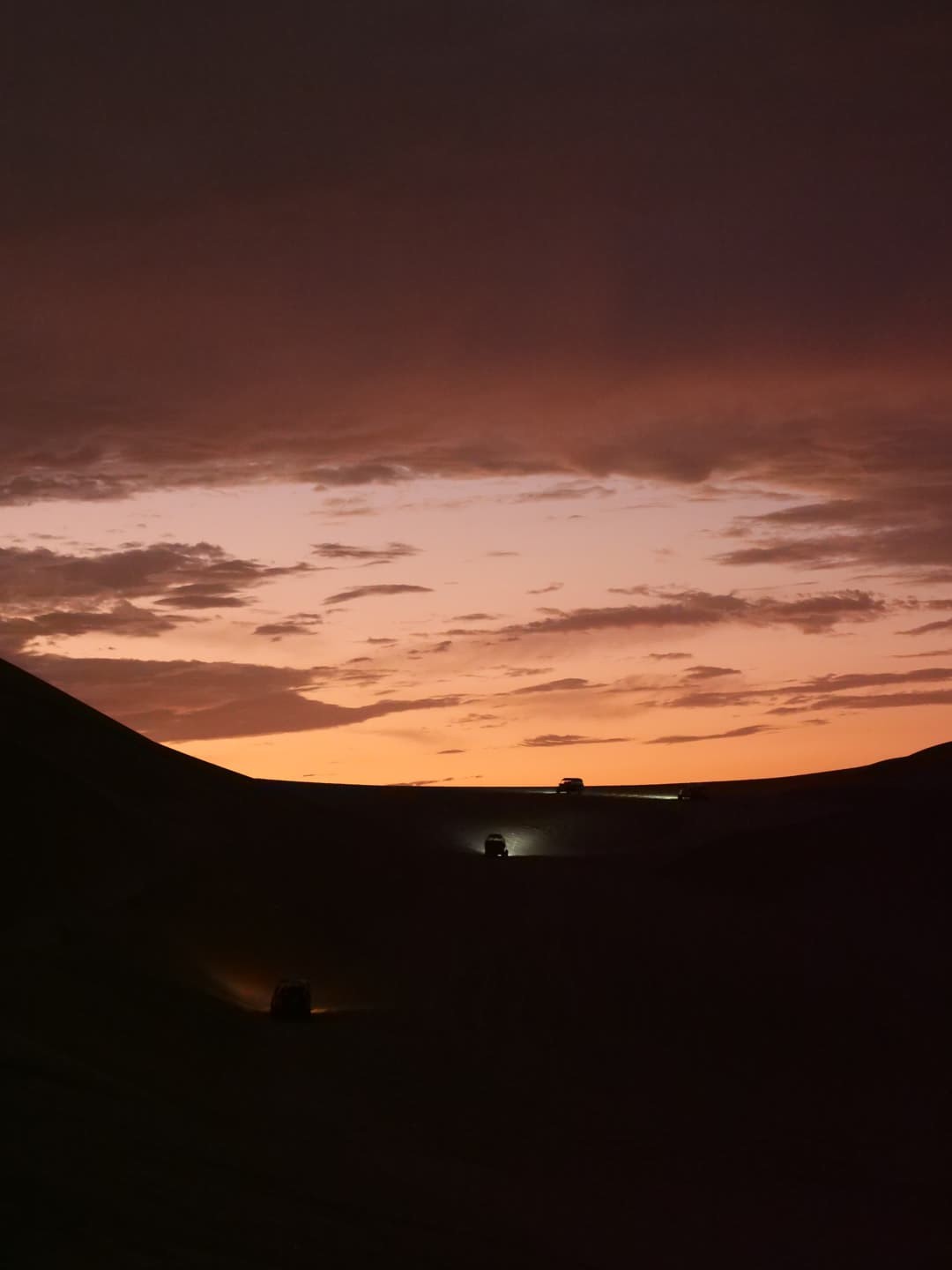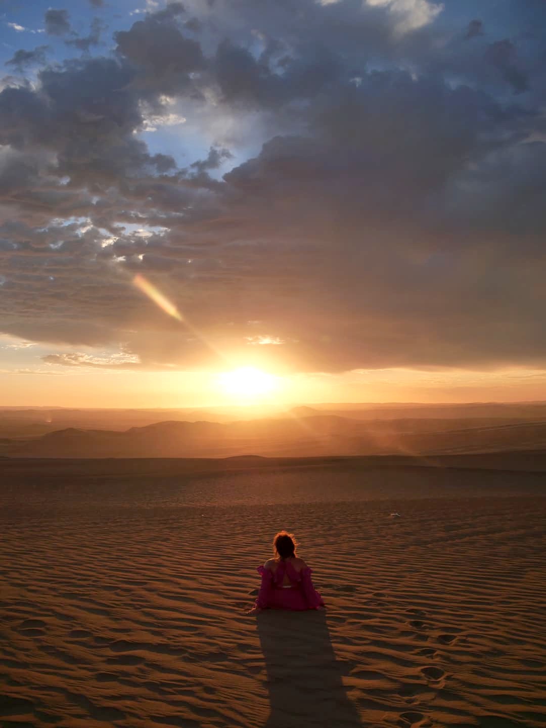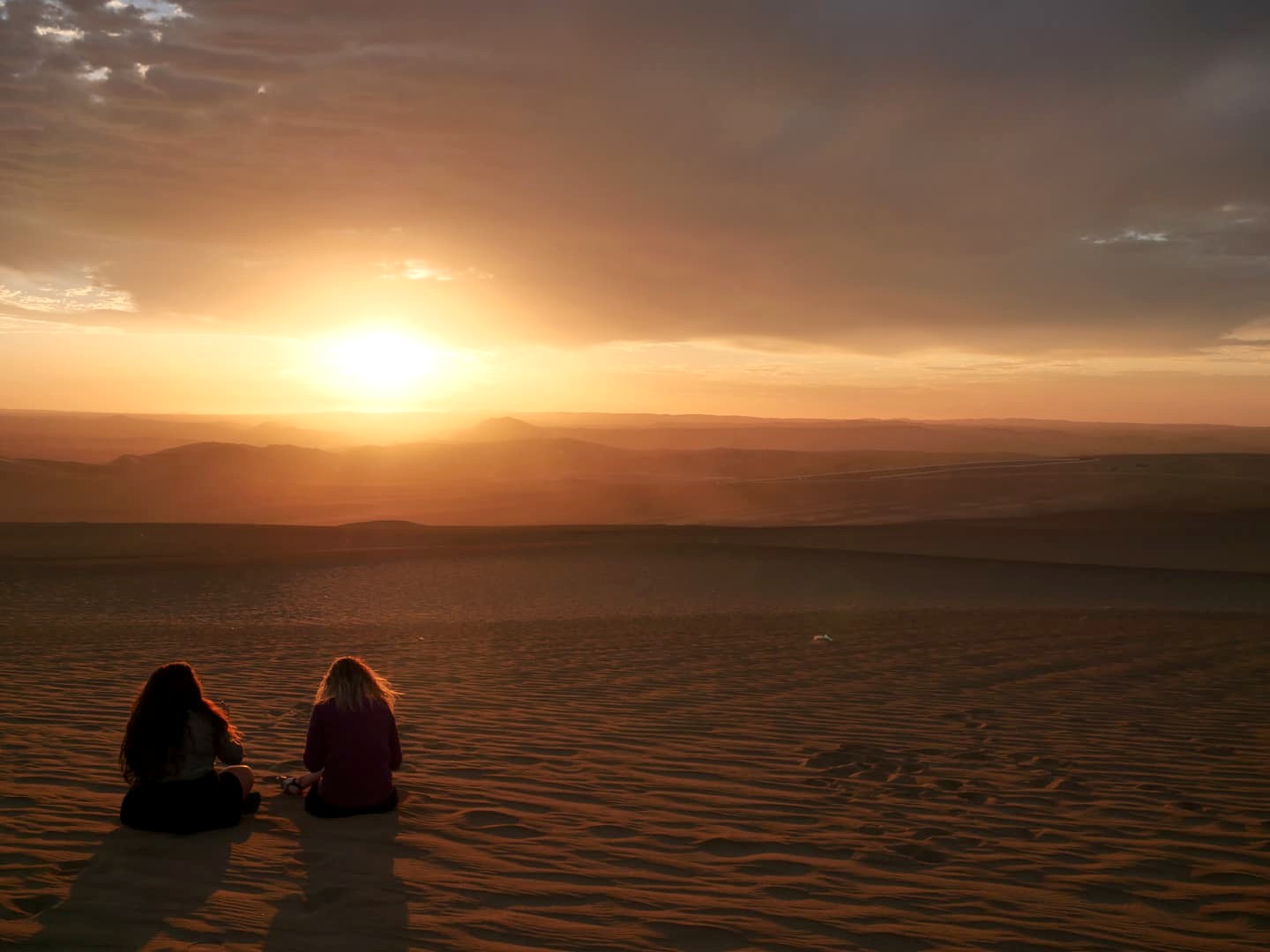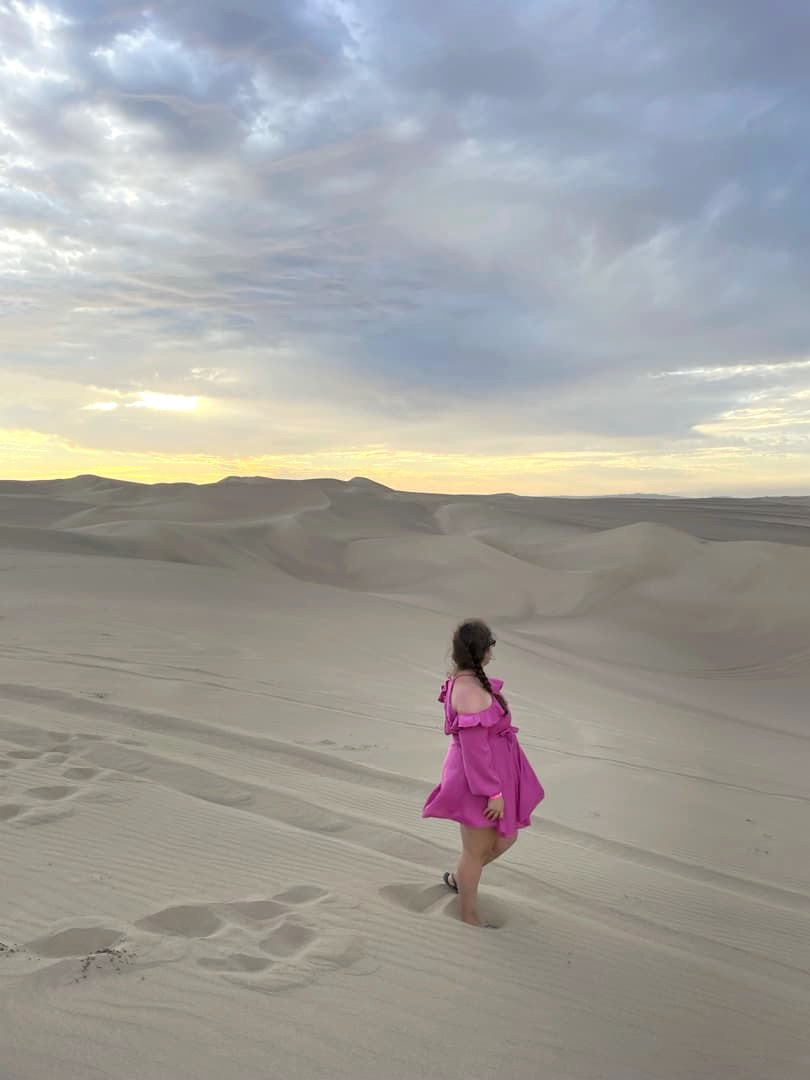 Le ciel s’était un peu couvert en fin de journée, mais on sait tous que ce sont les nuages qui donnent souvent les plus beaux couchers de soleil, et ça n’a pas manqué. Le coucher de soleil auquel on a assisté dans les dunes de Huacachina est probablement dans mon top 10 des plus beaux couchers de soleil que j’ai pu voir de toute ma vie ! Et le trajet de retour vers l’oasis sous un ciel entièrement rose fut tout aussi magique.