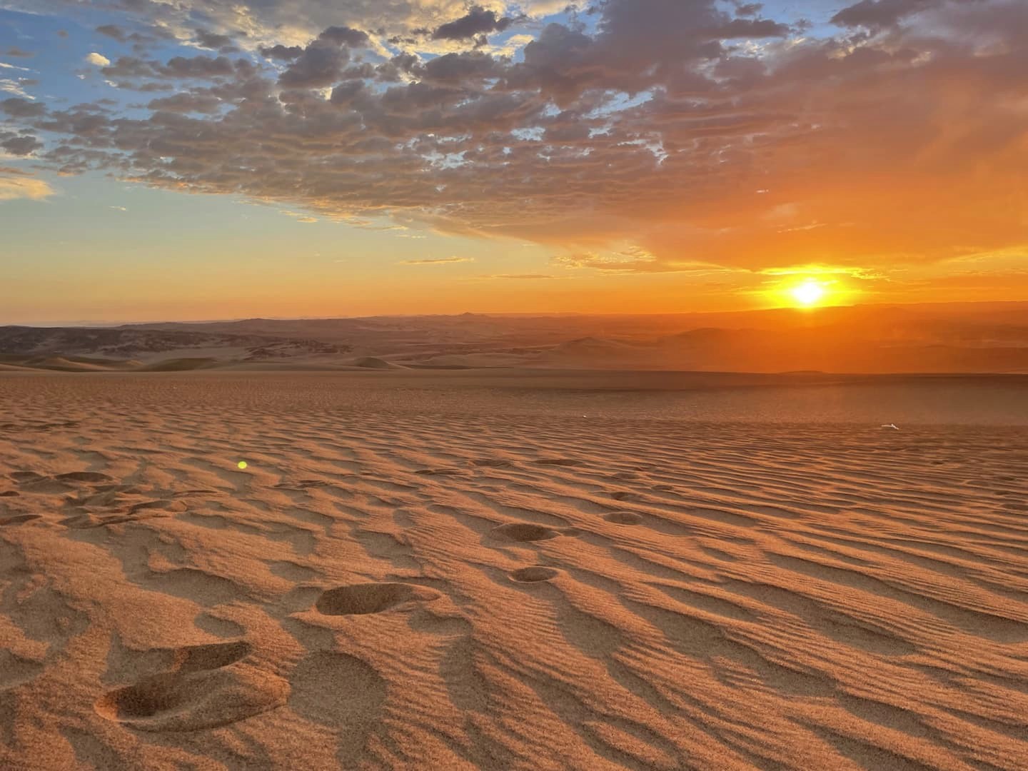 L’autre grand avantage quand on fait ce tour en fin de journée (celui qui part à 16h, et celui que je vous recommande donc fortement !), c’est qu’à la fin de l’excursion, le buggy s’arrête à un spot parfait en plein milieu du désert, où on s’installe en attendant le coucher du soleil… De quoi finir la journée en apothéose !