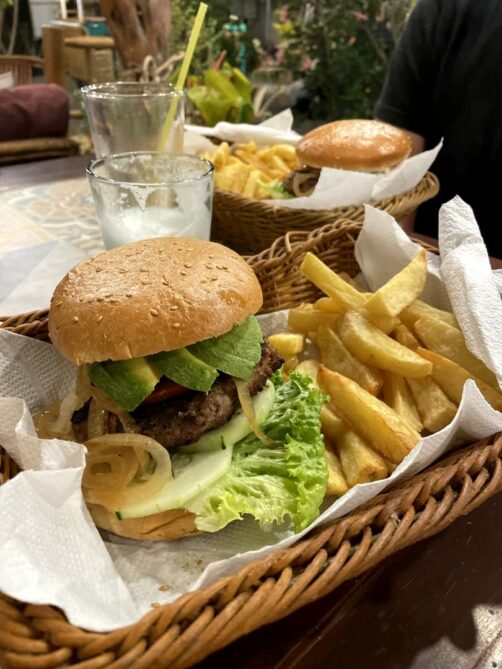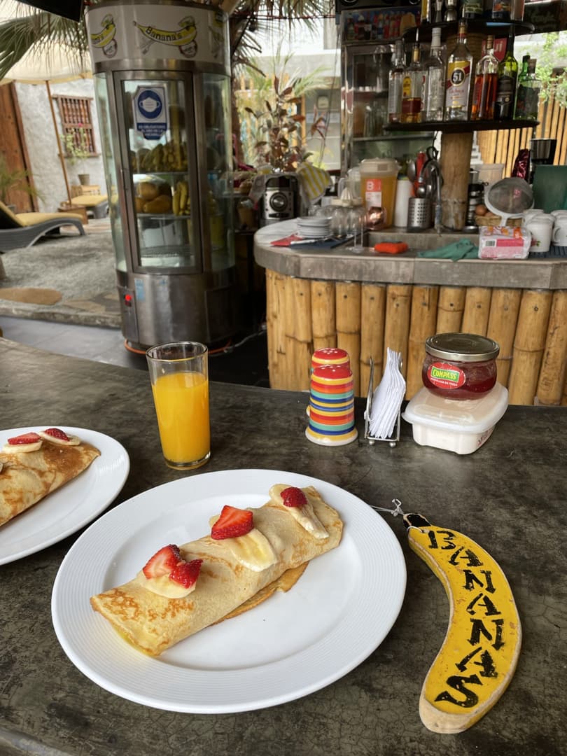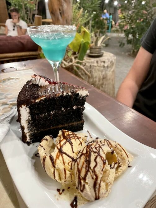 Par facilité, on y a aussi mangé le soir et on a été agréablement surpris par le repas : bon et pas cher ! Petit cocktail au pisco, bon burger avec des avocats bien frais, et un énorme gâteau pour terminer le repas… J’ai rarement vu d’aussi grosses portions qu’ici ! Le petit dej était inclus et préparé minute, excellent aussi.
