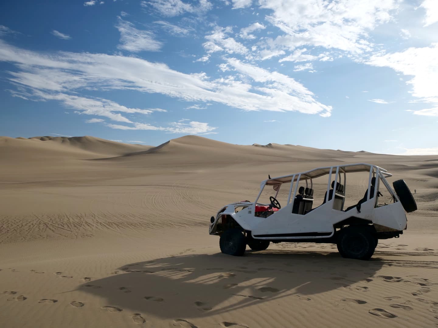 L’activité commence par un long tour en buggy dans les dunes, avec pas mal d’accélérations et de mini « cascades » : il faut avoir le coeur bien accroché, mais c’était vraiment fun !