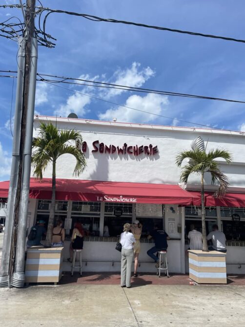 La meilleure sandwicherie de Miami Beach est évidemment… tenue par des français ! On y déguste, à moitié attablé le long du comptoir extérieur qui ne se désemplit pas, de très copieux sandwichs, à mi-chemin entre les sandwich américains et les baguettes françaises. On choisit ce qu’on veut dedans, et parmi les sauces maison (les américains ont l’air très friands de leurs « vinaigrettes à la française »), et on se fait servir en français svp. Ouvert tous les jours et fermé uniquement entre 5h et 7h du mat’, c’est l’endroit parfait pour se rassasier à n’importe quelle heure ! Evidemment, on peut aussi prendre les sandwichs à emporter.