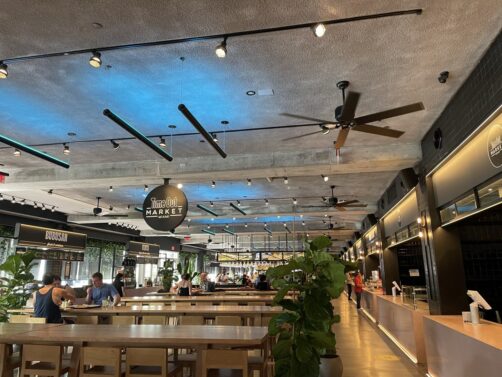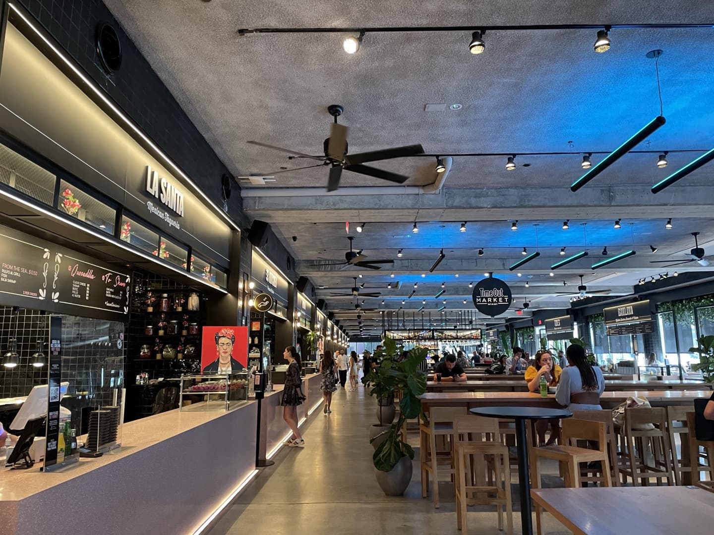 Depuis quelques années, Miami Beach possède aussi son Time Out Market. Ca ne vaut pas celui de Lisbonne, mais il fallait bien que South Beach se dote d’un food court ! Plusieurs stands de cuisines du monde sont installés autour des grandes tables à partager. Comme la tradition des food courts Time Out le veut, la plupart des stands sont liés à des restaurants installés ailleurs en ville ou dans les alentours. On va commander, puis on s’installe en attendant que son bipper sonne. En venant un peu en dehors des heures de table, il n’y avait pas grand monde ce jour-là et ça a été plutôt vite.