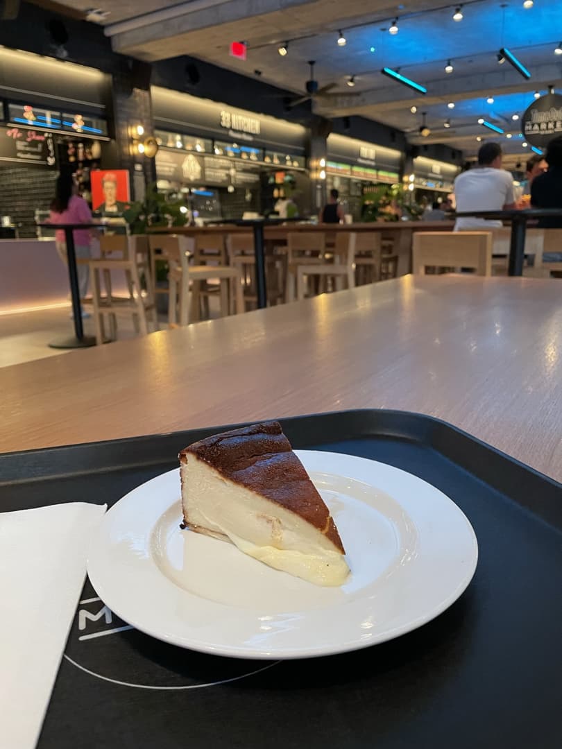 Après un choix un peu difficile, on a opté pour un jerk chicken du stand de cuisine jamaïcaine (bien moins emballant que celui que j’avais mangé à Orlando), puis pour le cheesecake basque de LUR (resto espagnol) qui par contre était tout simplement dingue (peut-être bien le meilleur cheesecake que j’ai mangé à ce jour, car j’en bave encore plus d’un an après en écrivant ces quelques lignes…).