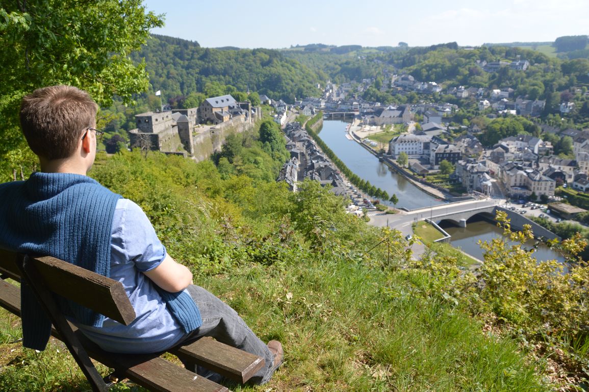 Enfin, nous n’allions pas passer la nuit à quelques minutes de Bouillon sans aller rendre une petite visite à la ville de Godefroy. Avec le beau temps qu’il faisait, nous avons opté pour une visite 100% nature de la ville, suivant une Geocache à travers un des circuits pédestres de la ville (liste des promenades possibles près du tunnel au pied de la citadelle, ou laissez-vous vous aussi guider par le Geocaching ;) )… Avec comme récompense à la fin de la montée, un splendide panorama sur Bouillon… !