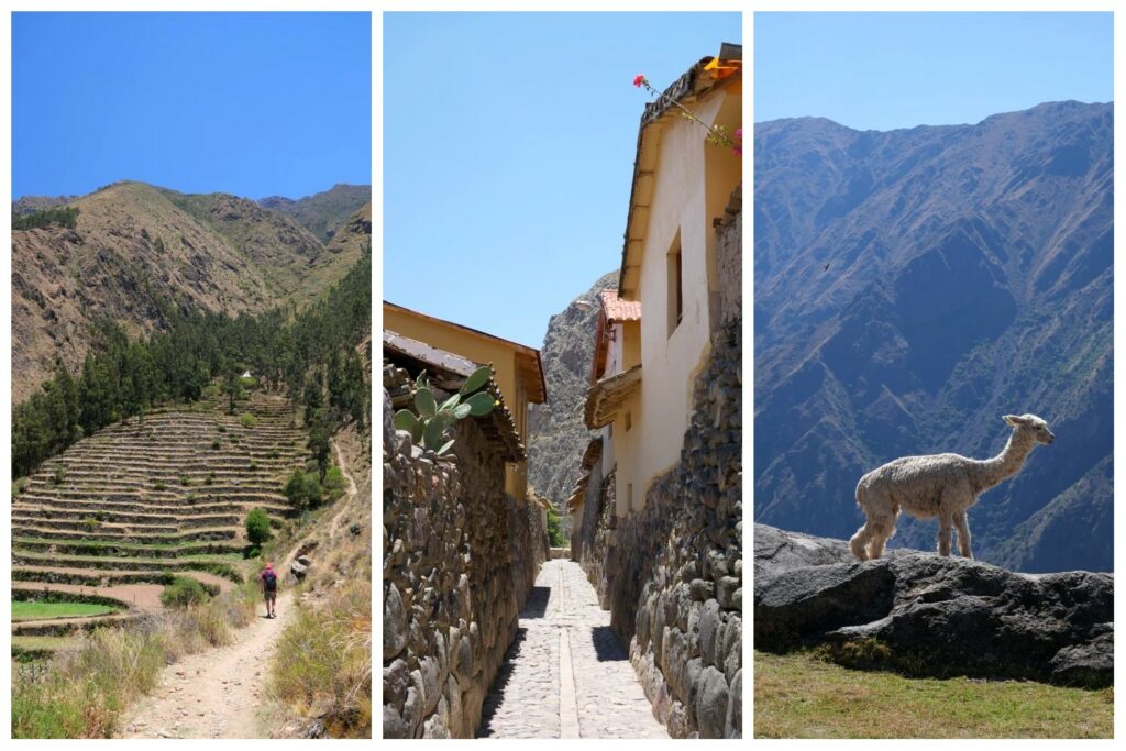 Après notre visite du Machu Picchu, la dernière étape de notre voyage au Pérou était la Vallée Sacrée, une région qui s’étend autour de Cuzco, connue notamment pour ses nombreux sites archéologiques Inca. A la fin de la vallée en venant de Cuzco, se trouve le village d’Ollantaytambo, grand lieu de passage de l’empire inca. Avec ses rues pavées et les nombreux vestiges qui l’entourent, il règne une atmosphère particulière dans ce village inca préservé. Même si beaucoup de touristes choisissent de ne passer que brièvement à Ollantaytambo, soit en chemin vers le Machu Picchu, soit dans le cadre d’une visite en un jour de la Vallée Sacrée au départ de Cuzco, c’est vraiment un bon endroit pour s’attarder davantage. On y trouve des possibilités de randonnées pour tous les niveaux, de bonnes adresses et un climat pas trop capricieux. Nous avions choisi de passer deux nuits de « pause » à la fin de ce voyage bien chargé, et j’ai apprécié l’atmosphère bien moins touristique de ce village. Dans cet article, je vous propose un petit résumé des principales choses à voir et à faire dans le coin, et je partage avec vous plusieurs bonnes adresses, dont un nouvel hôtel assez exceptionnel.