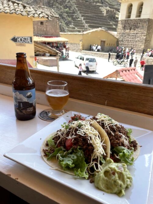 Nos pas nous mènent finalement en direction du site archéologique d’Ollantaytambo ou nous prenons un lunch avec vue sur le site au Sunshine Café. Installés sur la terrasse, on a dégusté nos petits plats accompagnés de bières d’une des meilleures microbrasseries du Pérou, la Sacred Valley Brewing Co. (élue meilleure brasserie du Pérou en 2016 et 2017).