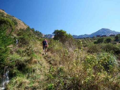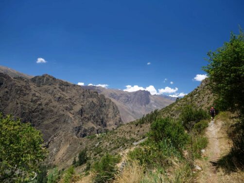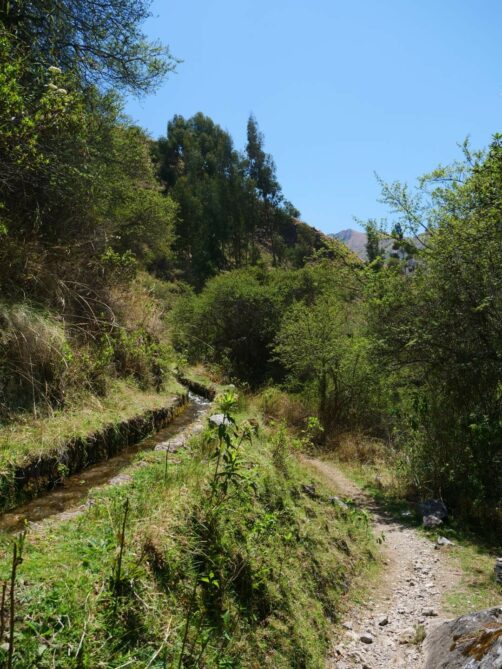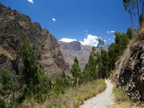 Après notre petite exploration de Pumamarka, nous avons décidé de redescendre à pied jusqu’à Ollantaytambo, en suivant une ancienne Inca Trail sur plusieurs kilomètres. Quand on parle d’Inca Trail au Pérou, on fait souvent référence à la plus célèbre, celle qui mène au Machu Picchu en plusieurs jours, mais il ne faut pas forcément marcher des jours (et payer aussi cher) pour faire l’expérience authentique d’un Chemin Inca, comme nous avons pu le réaliser ici !