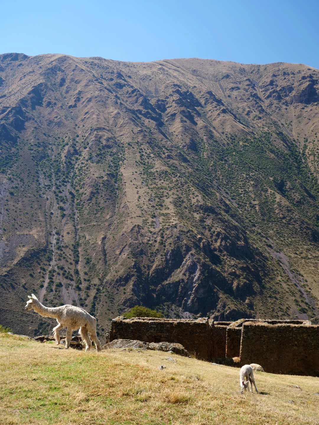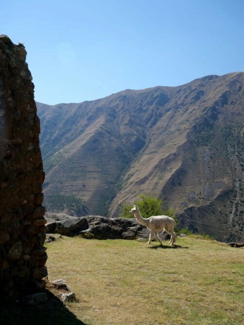 La navette gratuite de l’hôtel nous a déposés en haut de la vallée, pour visiter ce site archéologique inca où nous étions totalement seuls – ce qui a évidemment rendu l’expérience encore plus sympa ! Cette petite forteresse inca offre des vues imprenables sur les montagnes, rendues encore plus photogénique par les lamas et alpagas qui se baladent en liberté au milieu des ruines.