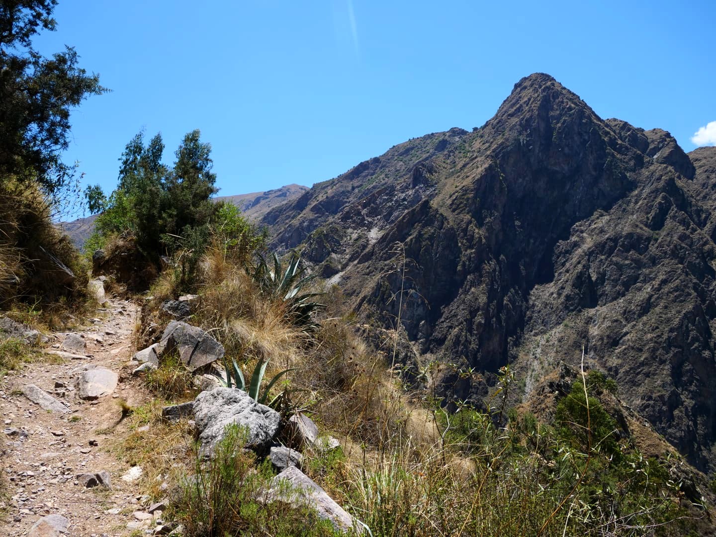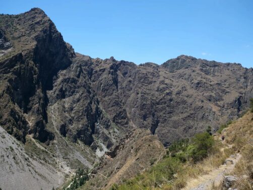 Pendant une bonne partie de la rando, le chemin suit les conduits d’irrigation qui servent à alimenter les cultures en terrasse (toujours en bonne partie utilisées). On est même tombé sur un « bar » chez l’habitant en chemin, et on a profité de la vue avec une petite bière. Vraiment, je ne comprends pas pourquoi ce chemin de randonnée n’est pas plus connu, puisque nous n’avons croisé absolument personne dessus… Une matinée vraiment exceptionnelle.