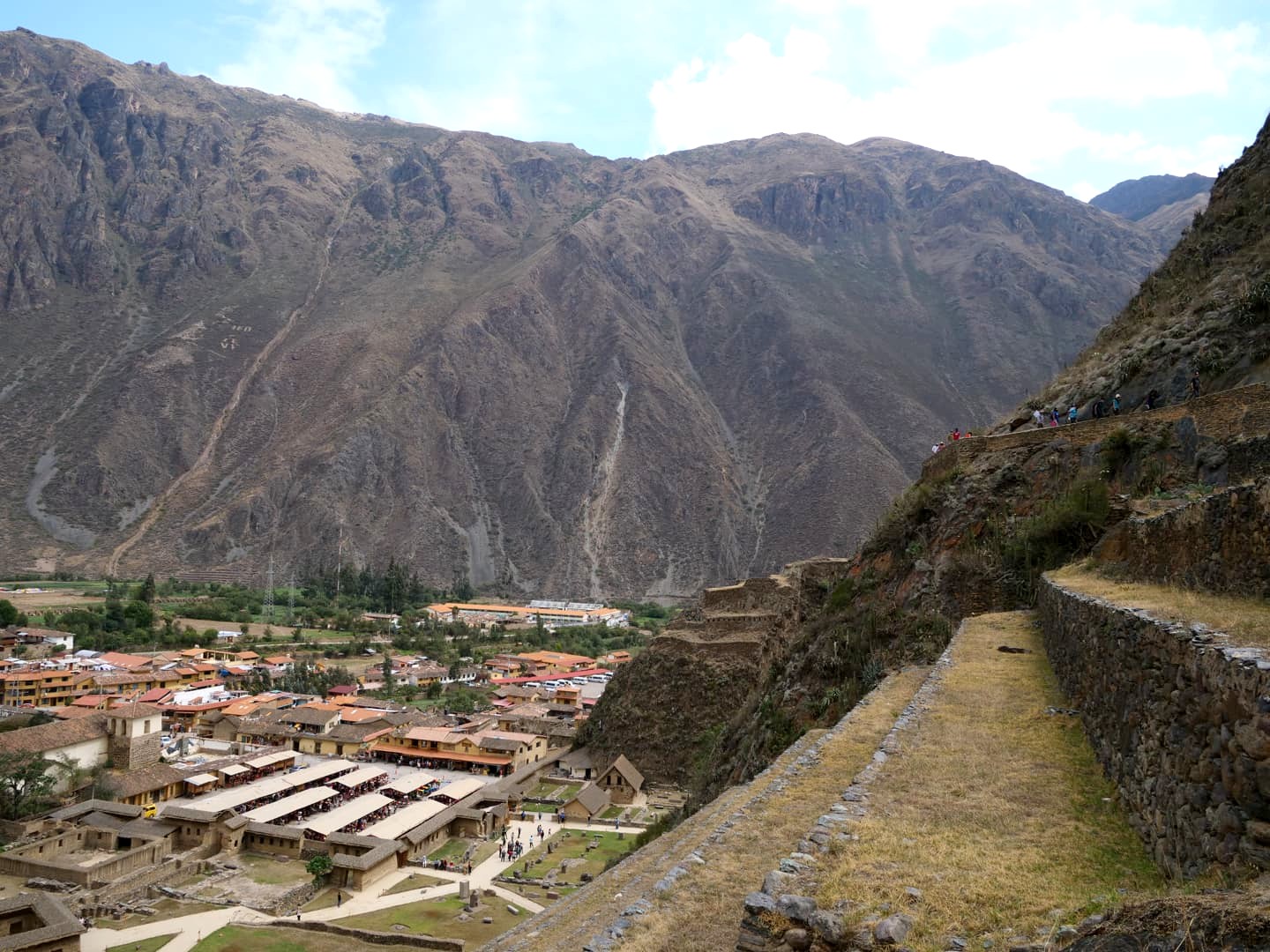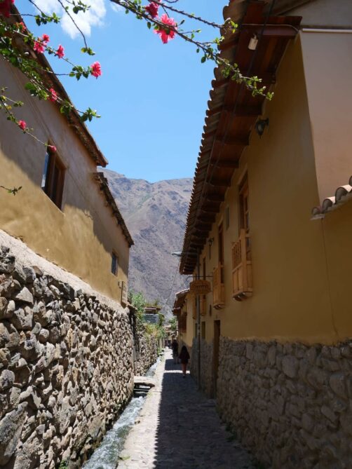 A la fin de notre longue descente, nous débarquons enfin dans le village d’Ollantaytambo, considéré comme un modèle de village Inca, et l’un des mieux préservés, avec ses petites ruelles pavées et son système de canalisations. C’est vrai qu’on a un peu l’impression de remonter le temps ici !