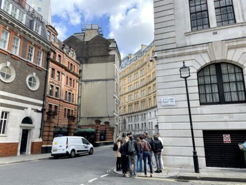 Un autre lieu de tournage sympa à découvrir, même s’il faut un peu plus d’imagination, c’est l’entrée du Ministère de la Magie (utilisée pour le tournage du 5ème film), qui se trouve à l’angle de Scotland Place et Great Scotland Yard. Il y a souvent du monde, car toutes les visites guidées y passent. Durant notre visite guidée, on a même reproduit une scène qui s’y passait. En réalité, il n’y a pas de cabine téléphonique à cet endroit par contre !