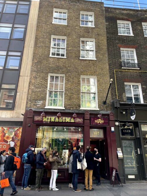 Le lieu exact est le 7A Stoney Street. Depuis peu (autrefois c’était un fleuriste), il est possible d’y manger puisque c’est devenu un restaurant de tacos (El Pastor). Évidemment, il y a toujours du monde donc préparez-vous à devoir attendre !