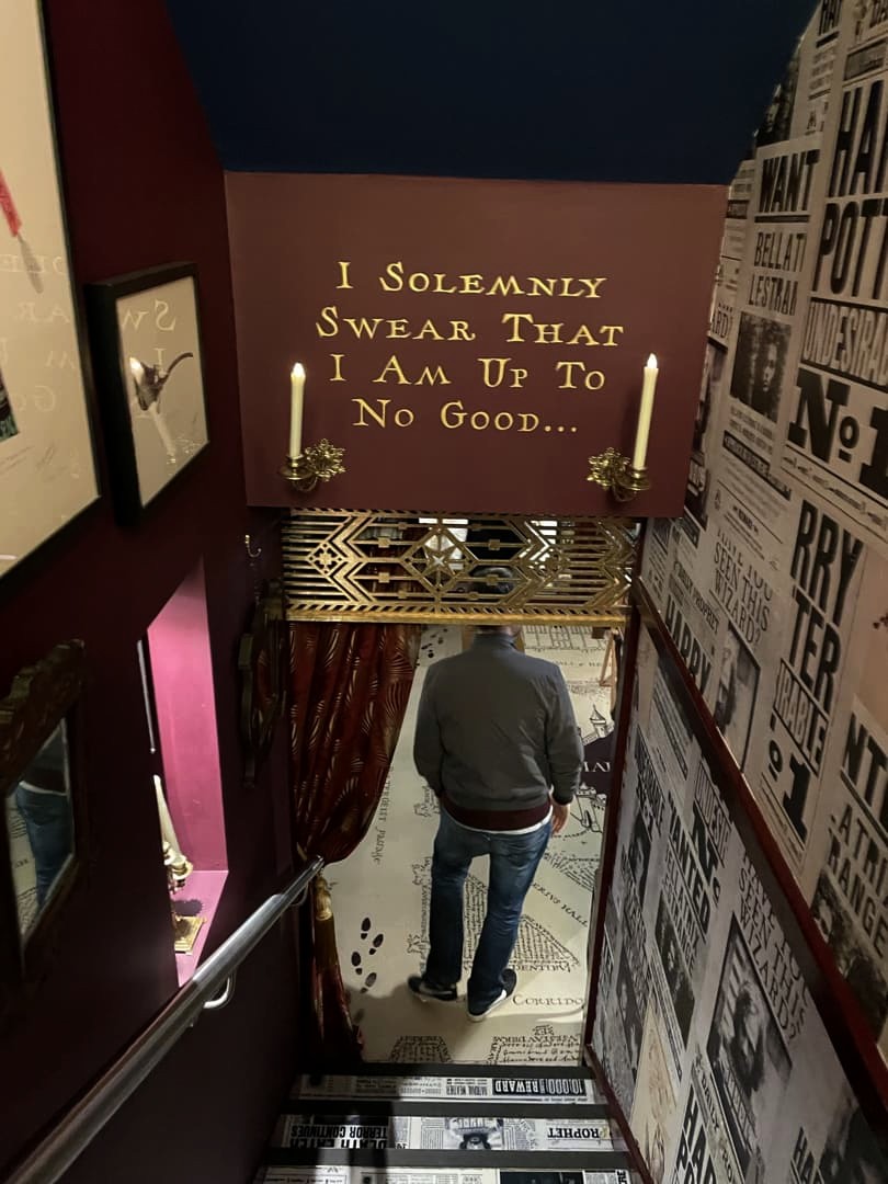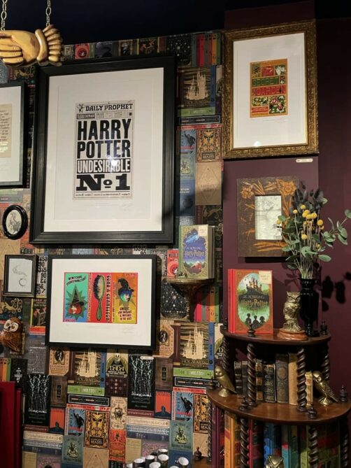 Une autre visite immanquable qu’il est éventuellement possible de faire entre les deux parties de la pièce de théâtre (ce n’est pas très loin), ou tout simplement si vous êtes dans le coin, c’est MinaLima, la boutique-musée des graphic designers (Miraphora Mina et Eduardo Lima) qui ont créé de nombreux designs pour les films, dont la carte du Maraudeur, les lettres de Poudlard, toutes les confiseries, les journaux animés, les affiches, les livres qu’on y voit, etc.