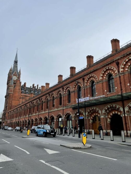 Tant que vous y êtes, n’oubliez pas d’admirer la belle gare de St Pancras (la gare de l’Eurostar), juste en face. Elle aussi est apparue dans la scène où Harry et Ron volent au-dessus de Londres dans la Ford Anglia des Weasley !