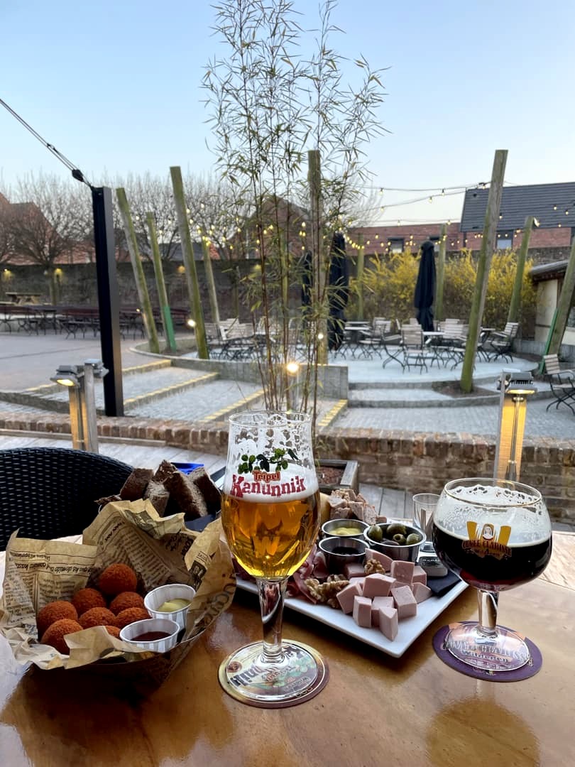 Nous y avons fait un apéro dinatoire avec de bons bitterballen et une grande planchette de charcuteries, pour accompagner deux de leurs bières primées : la Tripel Kannunik et la Cuvée Clarisse.