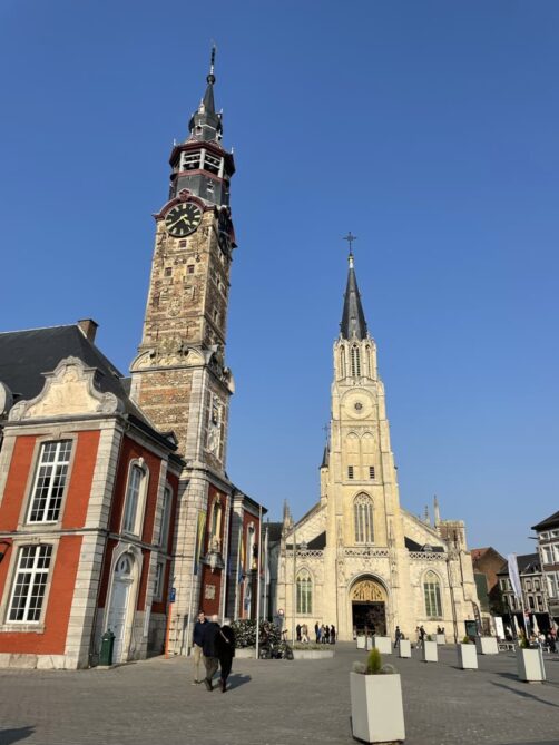 La Grand Place est entourée par plusieurs bâtiments importants. Le premier est l’Hôtel de Ville, construit au 18ème siècle autour du Beffroi médiéval de la ville, aujourd’hui classé au Patrimoine mondial de l’UNESCO avec un ensemble de beffrois de Belgique et du nord de la France.