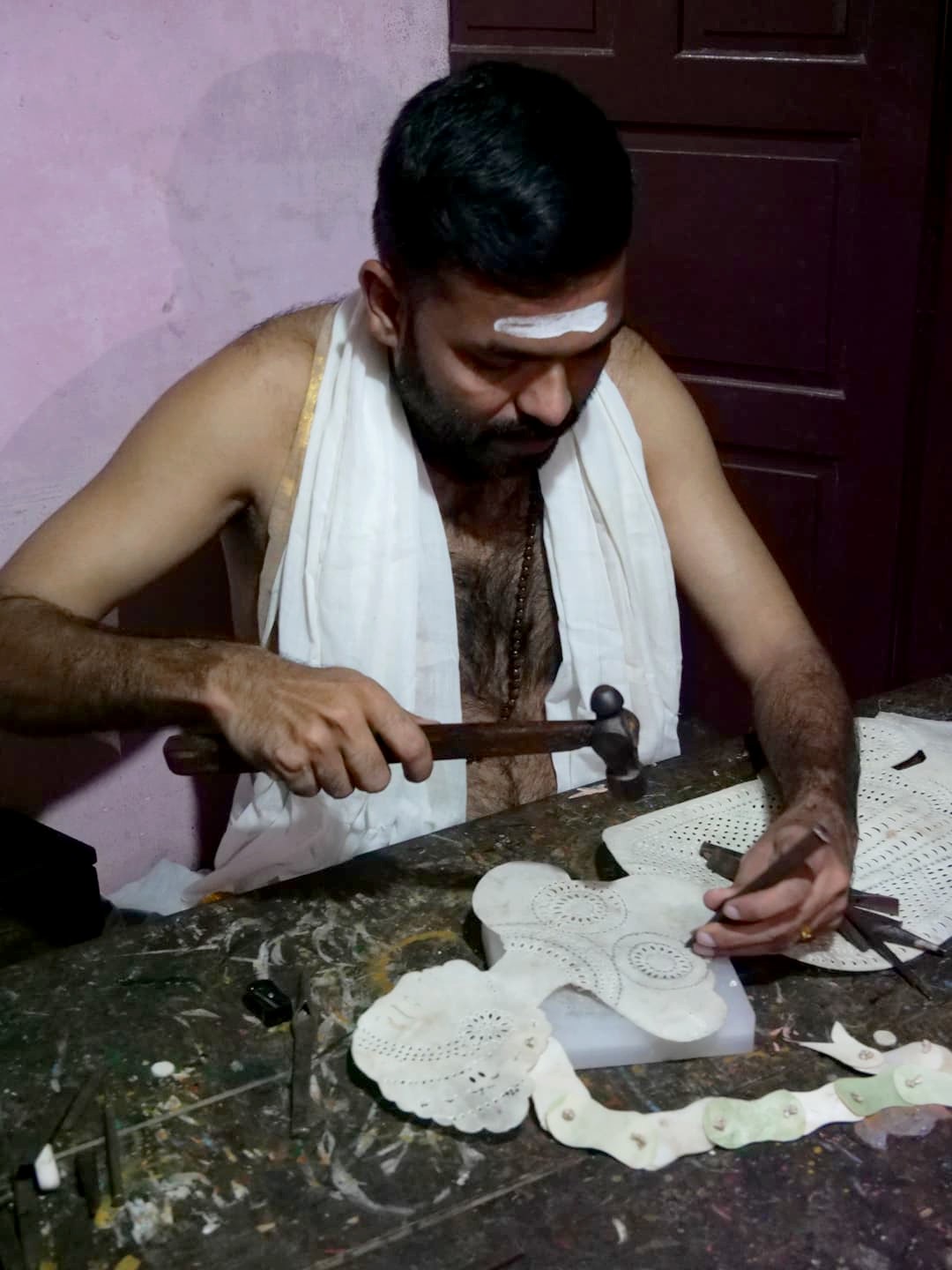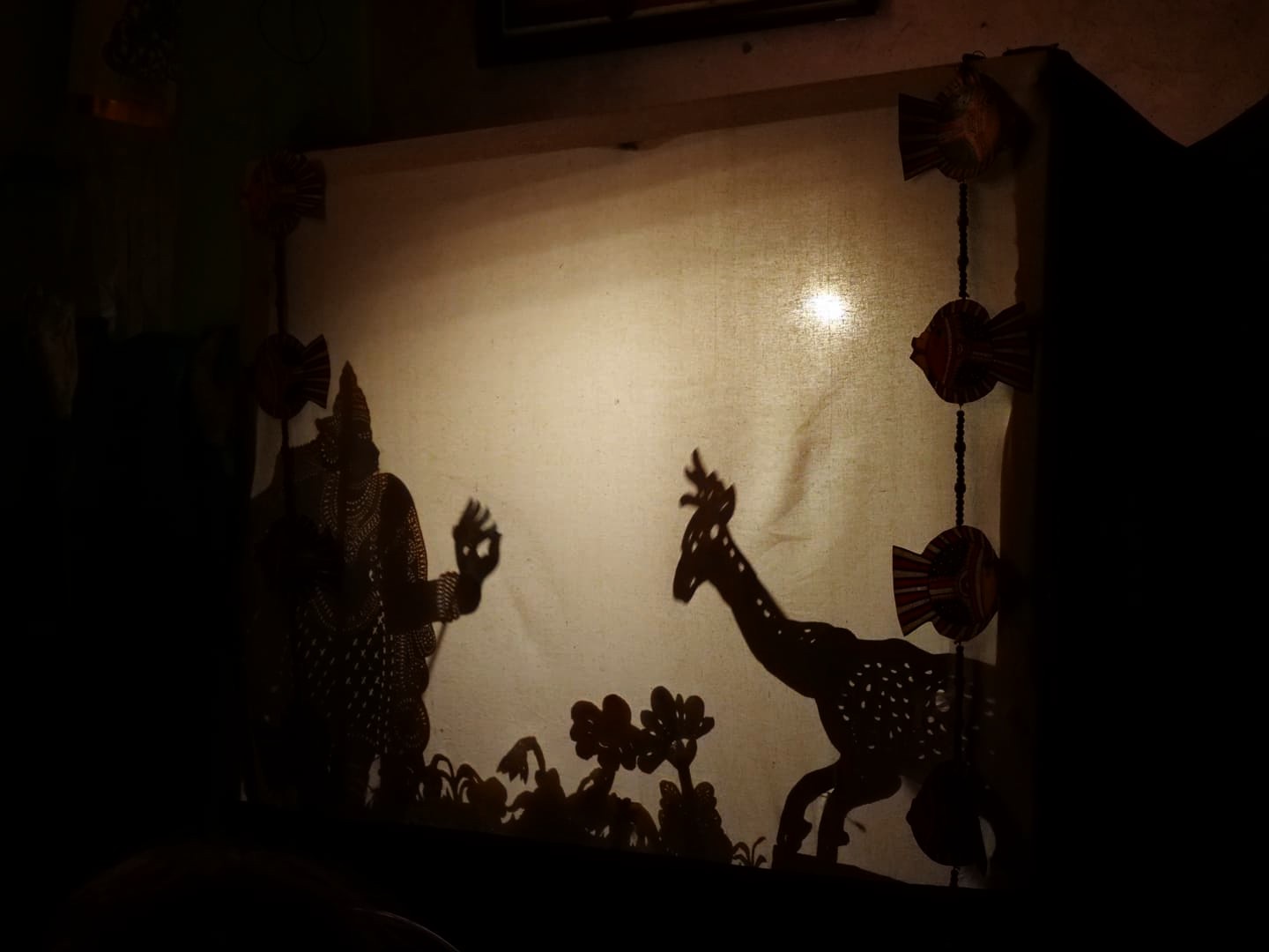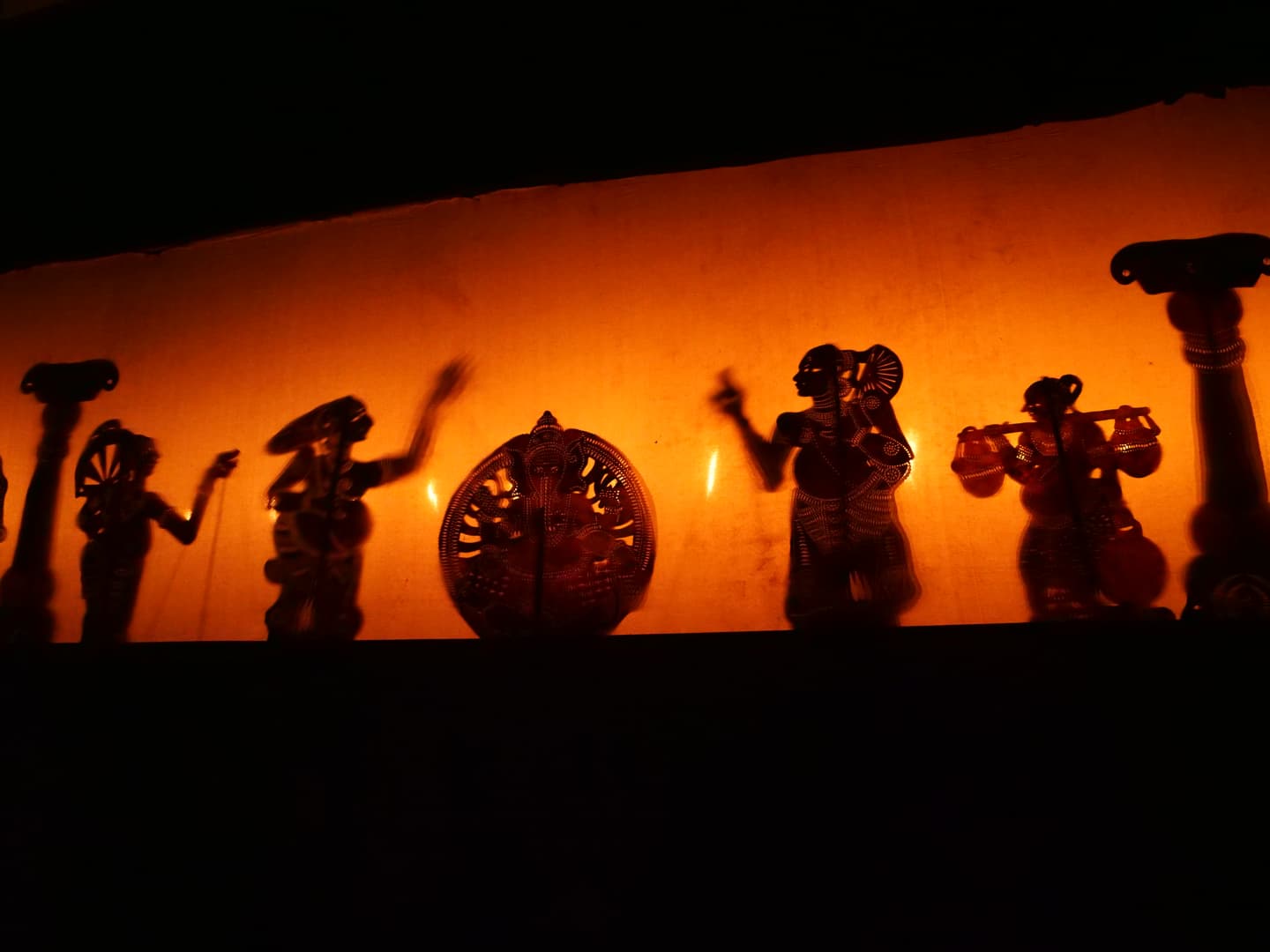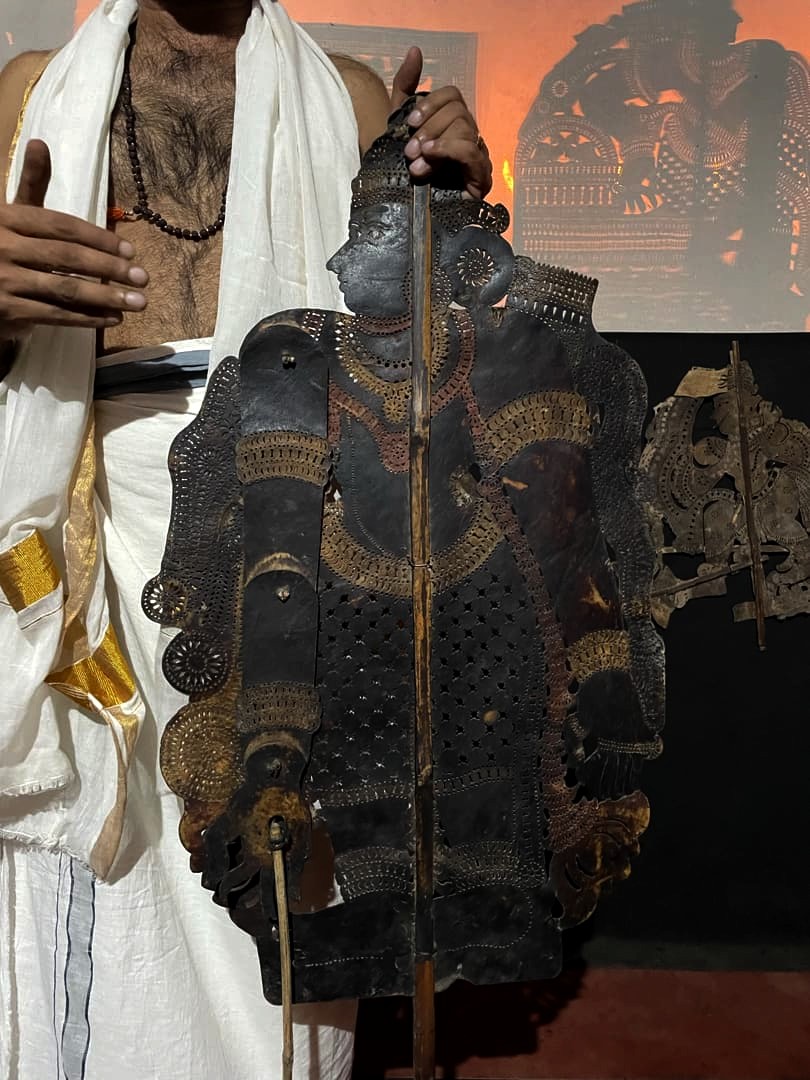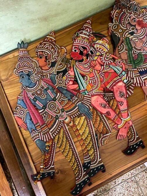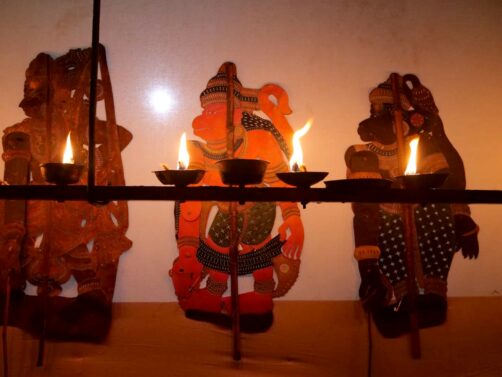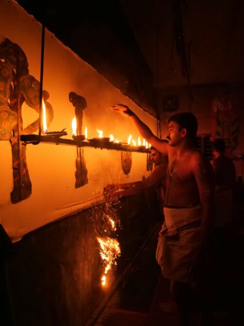Tout comme l’Indonésie (qui a copié l’autre ? Personne ne le sait !), le Kerala a une très longue tradition de « shadow puppetry », soit de théâtre d’ombres, réalisé avec des marionnettes en peau de cerf, dont les ombres sont projetées sur une grande toile blanche grâce à des torches à l’huile de coco.