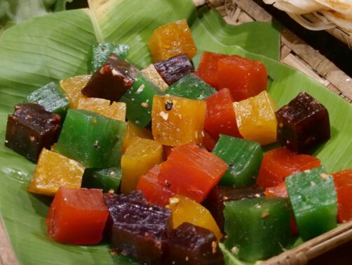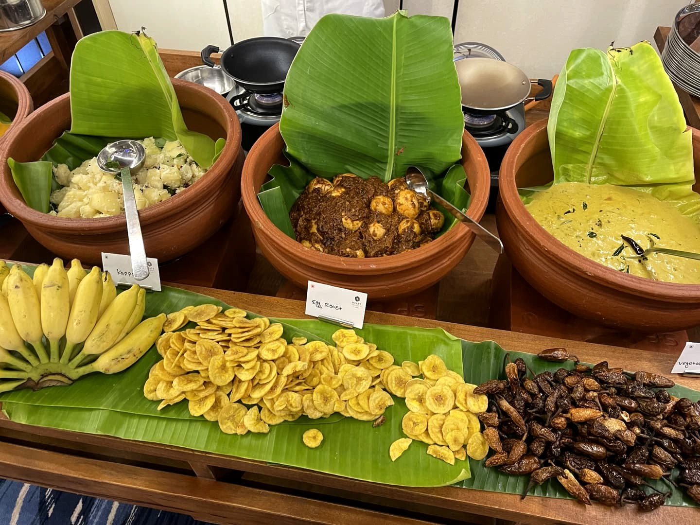 Au coeur de la cuisine du Kerala se trouve le sadya, repas traditionnel présenté sur des feuilles de bananier, qui est en quelque sorte le thali du Kerala. C’est celui que l’on mange lors des fêtes, des mariages ou pour toute occasion spéciale. On retrouve sur ces feuilles du riz, de la noix de coco, des préparations de curry, du sambal, des pickles, des bananes,… Une vraie explosion de saveurs !