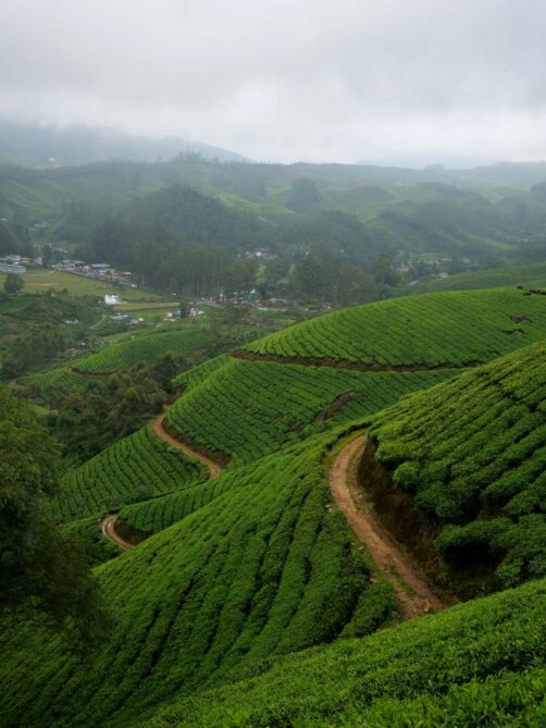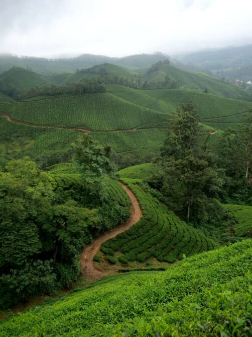 A l’opposé des rives bordées de cocotiers des Backwaters se trouvent les plantations de thé vallonnées de la région de Munnar. Les paysages de cette région verdoyante font partie des plus beaux du Kerala.