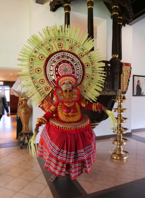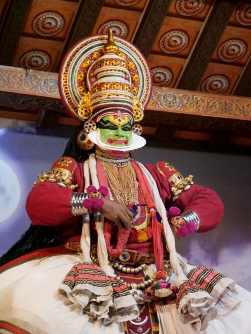 Le Kerala est une région particulièrement riche en arts traditionnels. Parmi ceux-ci, le plus connu est probablement le Kathakali, une forme de théâtre dancé originaire du Kerala, qui raconte des épopées hindoues. Je vous recommande d’assister à un spectacle de Kathakali durant votre voyage car c’est quelque chose de tout à fait unique. Le jeu des acteurs est centré sur les expressions du visage (et surtout des yeux) et les positions des mains, c’est vraiment impressionnant !