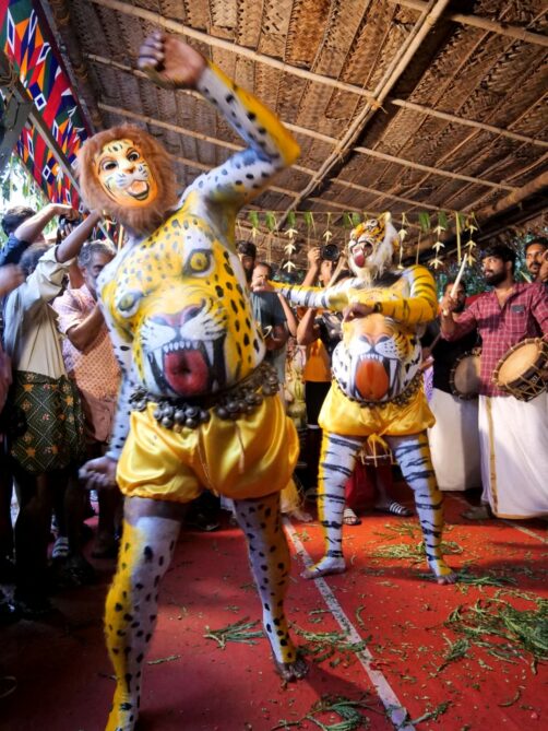 Des festivals sont organisés à peu près toute l’année, en fonction des régions. Vous pouvez voir la liste complète des principaux festivals religieux du Kerala ici. Un des plus connus est le festival Thrissur Pooram (au nord du Kerala), à cause notamment de ses éléphants peints en l’honneur des dieux.
