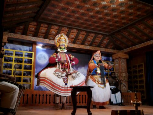 Tout comme pour le théâtre des ombres, les spectacles de Kathakali sont traditionnellement joués dans les temples dans le cadre de cérémonies religieuses et de festivals. Dans ce cadre, l’accès est gratuit mais ceux-ci ont lieu en plein milieu de la nuit !