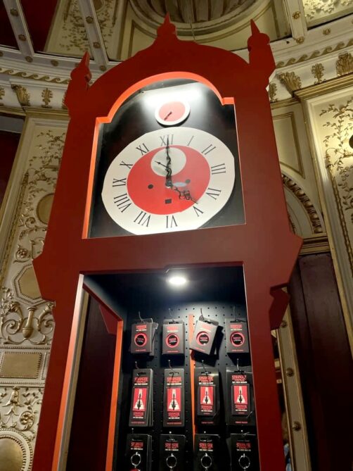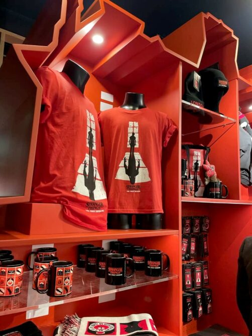 Avant la pièce, vous avez accès à deux espaces bars (un en haut, un en bas), et à une petite boutique avec des souvenirs de la pièce. Par rapport aux nombreux produits et gadgets qu’on pouvait acheter pendant la Stranger Things Experience, il n’y a par contre pas grand-chose ici. Quelques t-shirts, des porte-clés, des mugs…