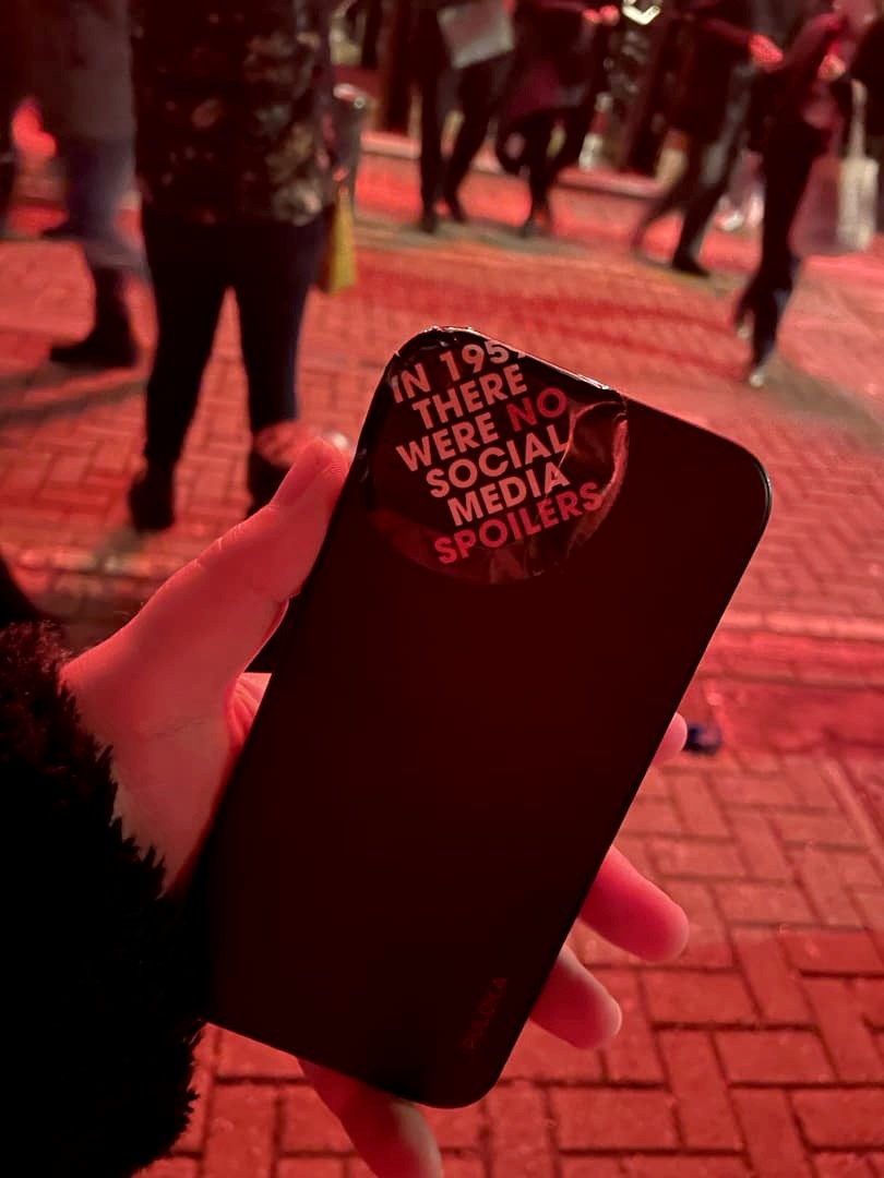 Je vous aurais bien montré à quoi ça ressemble, mais malheureusement les photos sont strictement interdites dans la salle, même avant le début de la pièce, et on vous colle même ce sticker assez amusant sur votre téléphone à l’arrivée :
