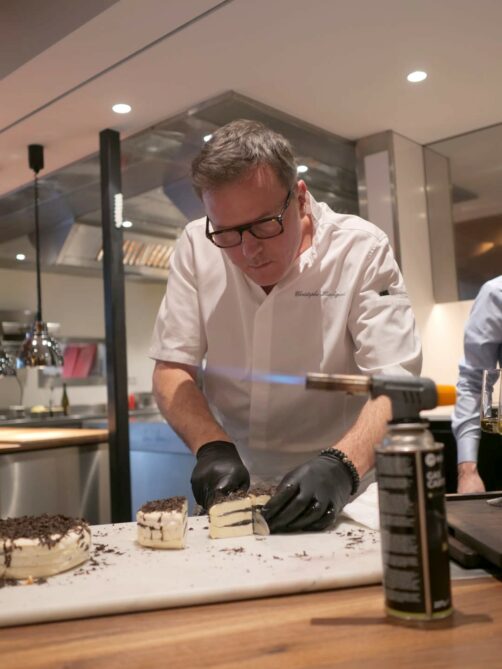 En 2022, Christophe Hardiquest surprenait en annonçant fermer son célèbre restaurant bruxellois doublement étoilé, Bon Bon. En quête de renouveau, il atterrit alors à Châteauneuf-du-Pape, où il devient consultant pour le restaurant étoilé La Mère Germaine. Aujourd’hui de retour à Bruxelles (mais avec toujours un pied à Châteauneuf-du-Pape), il a ouvert en février 2023 le restaurant Menssa, où il propose une cuisine recentrée, tournée vers la nature et le terroir. Avec bien sûr, pour accompagner ses plats, des vins de Châteauneuf-du-Pape. C’est ainsi que je me suis retrouvée, il y a quelques semaines, à un déjeuner d’exception à la grande table de Menssa, entourée de vignerons de l’appellation. Car quel meilleur ambassadeur que Christophe Hardiquest pour mettre en avant ce terroir si particulier !
