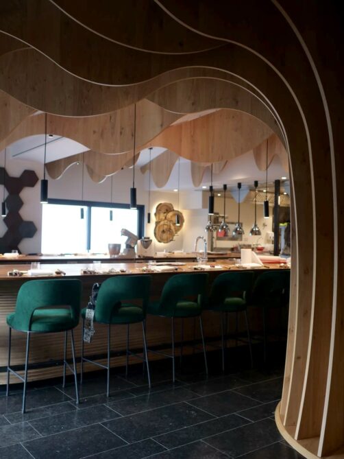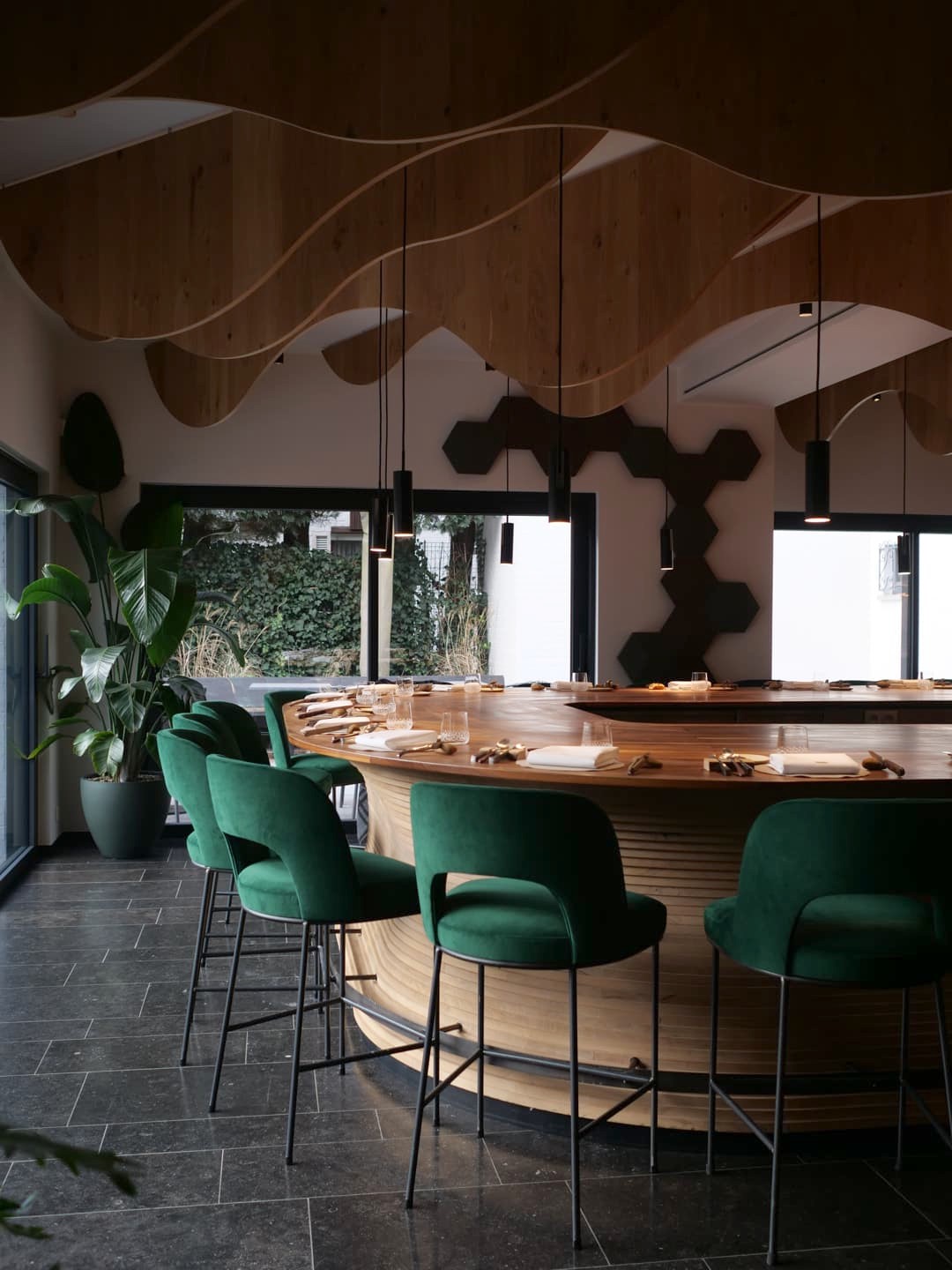 Dès que l’on met les pieds chez Menssa, on comprend que la nature et le partage ont été au cœur du renouveau qu’a souhaité le chef. Décoration végétale, matières naturelles, et surtout cet énorme comptoir en noyer, partagé par tous les clients. Un espace convivial encourageant les échanges, qui n’est pas sans rappeler le Japon. Cette volonté de partage se retrouve jusqu’en cuisine, puisque le chef a tenu à y former une toute jeune équipe, pour lui transmettre sa passion.