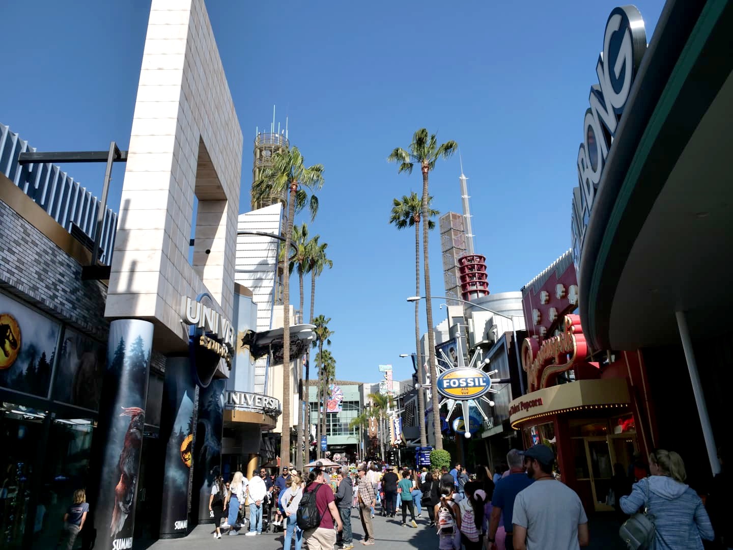 Comme nous avions « fini » le parc assez tôt (ça n’arrive jamais !), nous avons terminé la journée en faisant un tour dans la (grande) CityWalk, la zone de commerces et restaurants libre d’accès qui se situe juste à l’extérieur du parc. On y trouve les grands classiques tels que le Bubba Gump Shrimp Co., Margaritaville ou le Hard Rock Café (qui ne deçoivent jamais). Il y a aussi un cinéma IMAX, une salle de concert,… Bref, pas de quoi s’ennuyer même après l’heure de fermeture du parc !