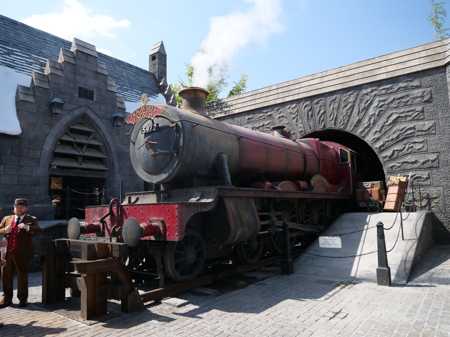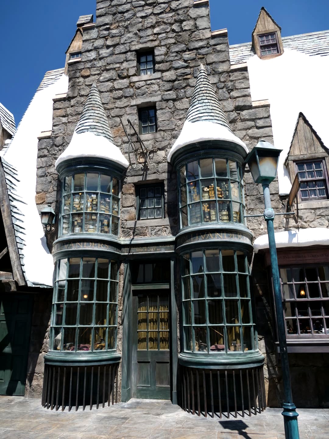 La zone Harry Potter d’Universal Studios Hollywood ne couvre que la partie Poudlard/Hogwarts et Pré-au-Lard/Hogsmeade (la partie avec le Chemin de Traverse ne se trouve qu’à Orlando). Vous y trouverez plusieurs boutiques dont une boutique Ollivanders où vous pouvez choisir votre baguette magique, le resto des Trois Balais, une réplique du Poudlard Express (qui ne roule pas), des live shows et deux attractions : Harry Potter and the Forbidden Journey et le Flight of the Hippogriff, un roller coaster pour enfants (sympa mais la file ne vaut pas trop le coup en tant qu’adulte je trouve).
