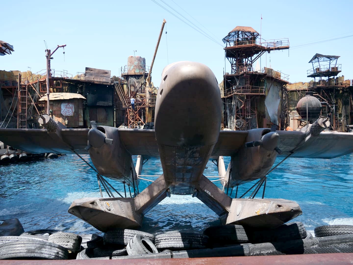 Lors de notre visite, nous avons notamment pu voir un set des Dents de la Mer (Jaws), le crash d’avion de La Guerre des Mondes, le Bates Motel de Psycho, ou encore un set Far West où avait été récemment filmé Once Upon a Time in Hollywood. Dans la même zone, on peut voir une fausse rivière en crue, telle qu’elle est apparue dans le film Superman IV.