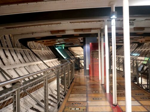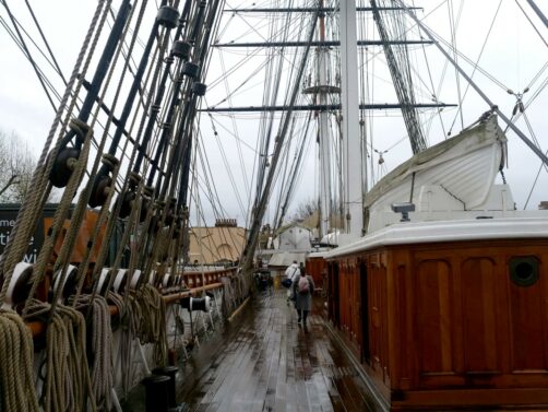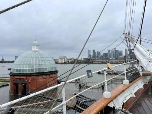Il s’agit d’un des quatre Royal Museums de Greenwich, et l’un des deux payants (plusieurs possibilités : un billet simple, un billet combiné avec l’Observatoire de Greenwich, ou compris également dans les pass attractions Go City). La visite est assez rapide mais ça reste une très bonne introduction pour comprendre le rôle central qu’a joué ce type de navires dans l’histoire britannique. Depuis le pont supérieur du bateau, on peut aussi profiter de belles vues sur la Tamise et sur Canary Wharf en face.
