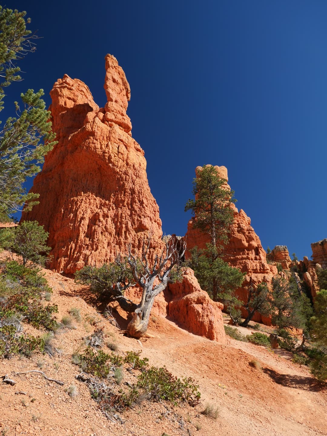Après un lunch à Escalante, nous arrivons en début d’après-midi à Bryce Canyon, où nous commençons par la petite randonnée de Mossey Trail, une très belle mise en bouche.