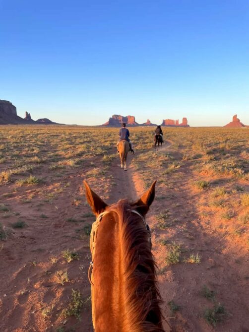 Nous prenons ensuite la route vers la Monument Valley, en territoire amérindien tout comme Page, où nous arrivons en milieu d’après-midi. Nous avons quand même largement le temps de faire par nous-mêmes la Monument Valley Drive, la route scénique qui traverse le parc, avant de terminer la journée par une très scénique balade à cheval au coucher du soleil. Encore une journée en plein dans le rêve américain !